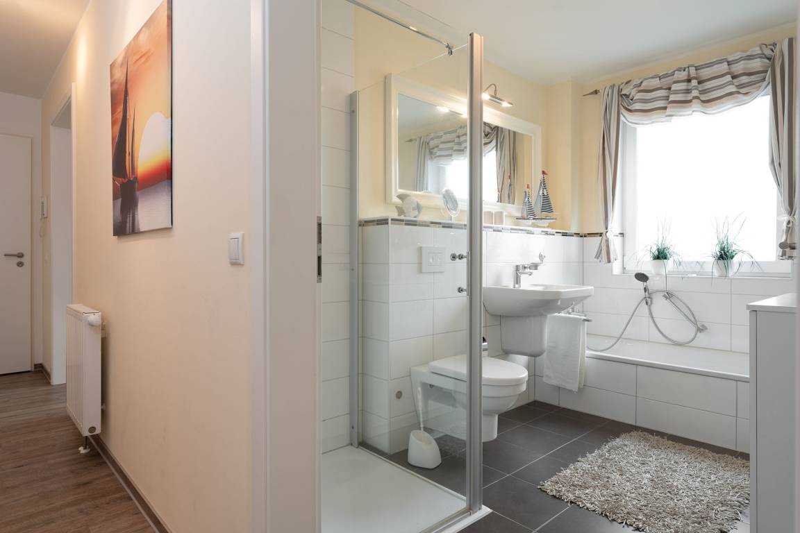„Moin, Eine Wohnung, die preismäßig sicher im oberen Bereich liegt. Aber sie ist jeden Euro wert. Sehr gute Raumaufteilung, geschmackvoll eingerichtet, in der Küche alles da, was man im Urlaub braucht. Was aber am schönsten ist: Badewanne und Dusche. Wir waren in sehr vielen Wohnungen in Kellenhusen, diese gehört ganz sicher zu den Schönsten.“