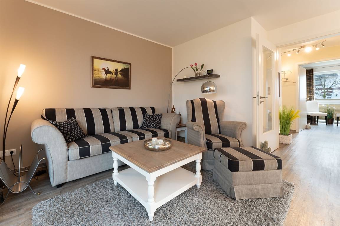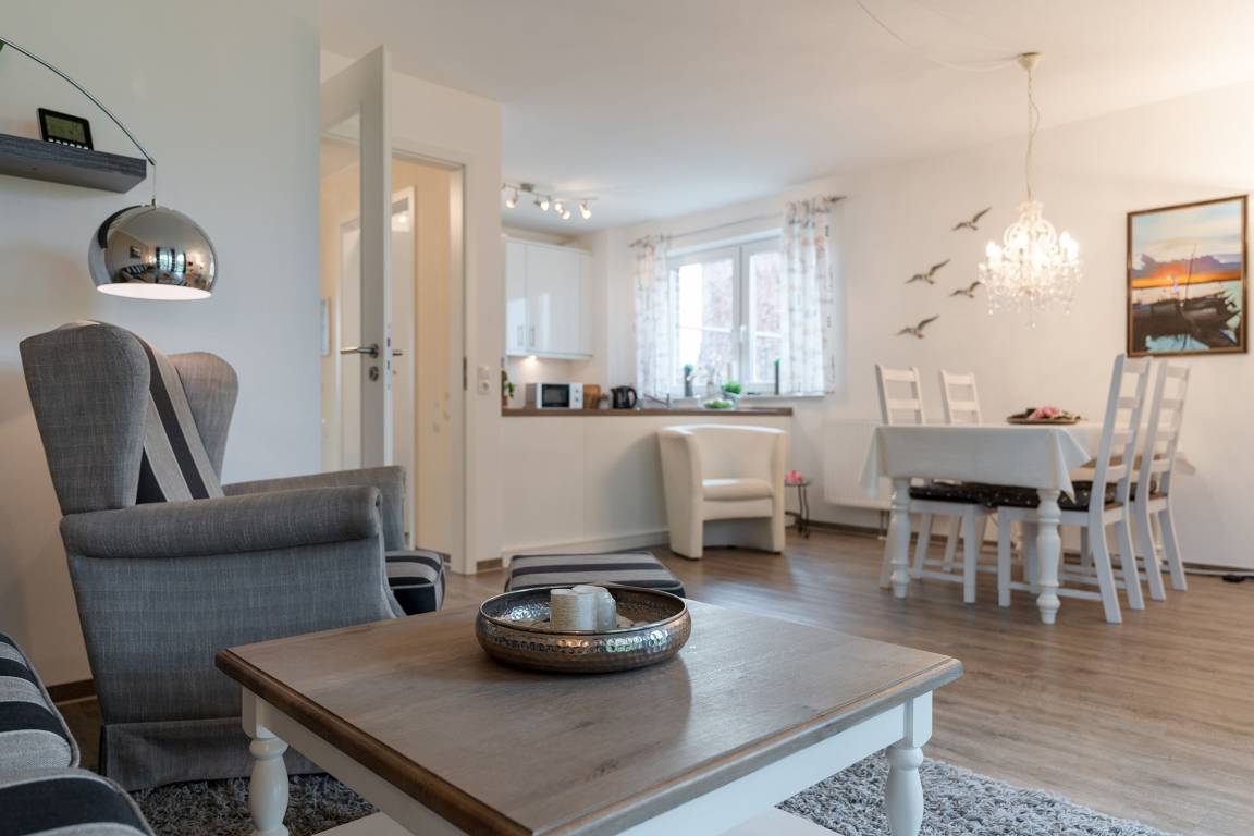 Diese modern ausgestattete Ferienwohnung im Erdgeschoss der gepflegten Anlage Strandhäuser bietet mit einer Wohnfläche von ca. 75 qm, 2 Schlafzimmern und Terrasse ausreichend Platz und Komfort für bis zu 4 Personen plus Baby.