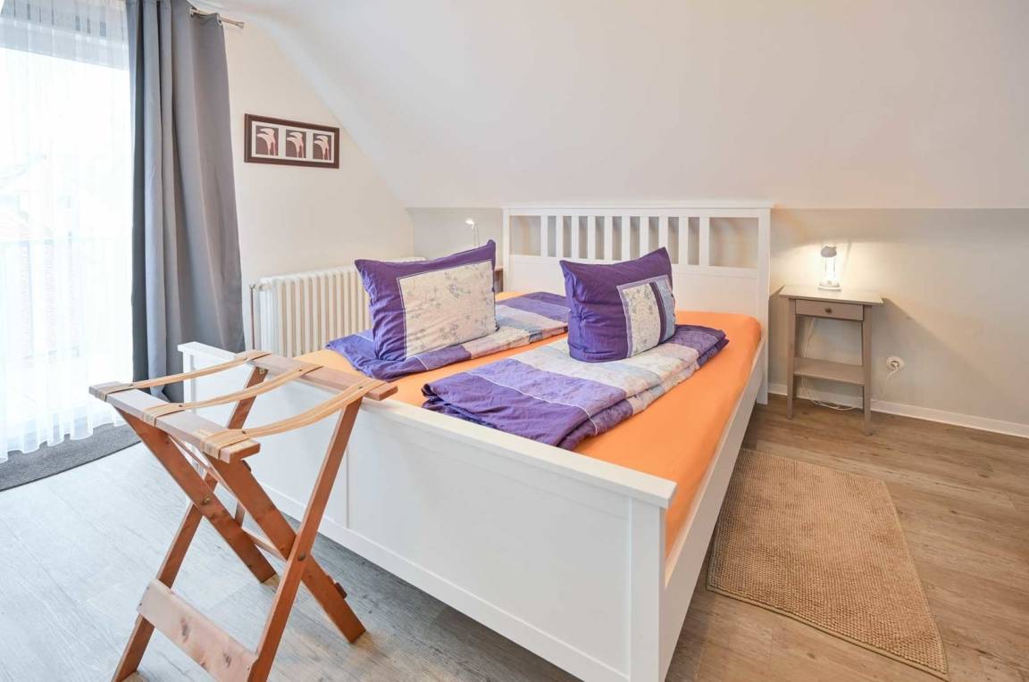 Die Ferienwohnung mit Balkon liegt im Obergeschoss des Hauses.