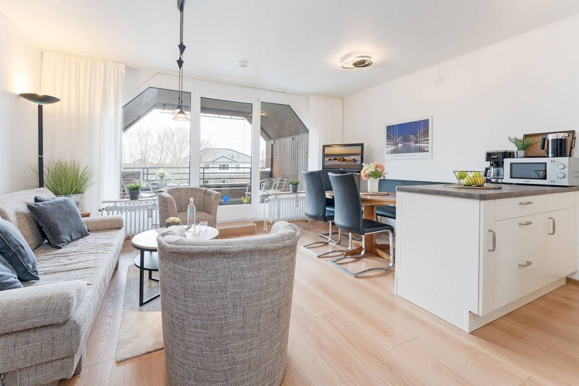 Genießen Sie Ihren nächsten Ostseeurlaub in Kellenhusen: charmante 2-Zimmer-Ferienwohnung im 2. Stock mit Balkon, Gemeinschaftsgarten und einer Wohnfläche von ca. 41 m² für bis zu 3 Personen.