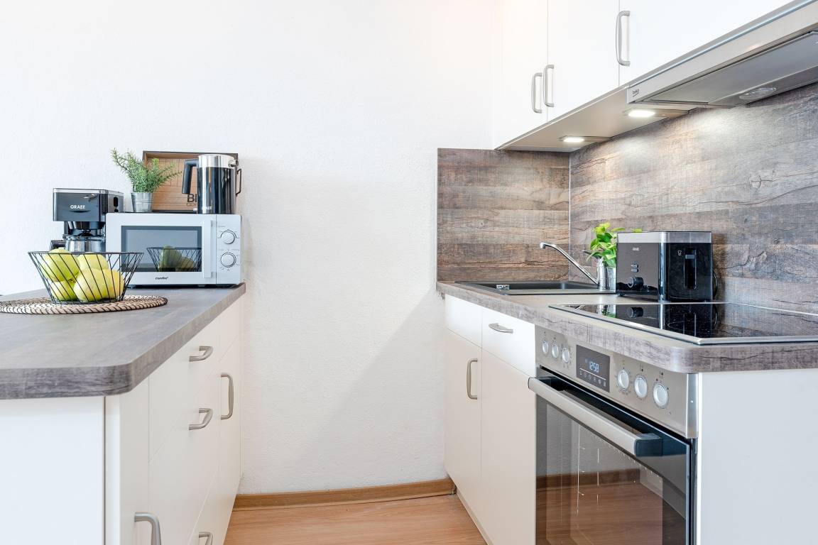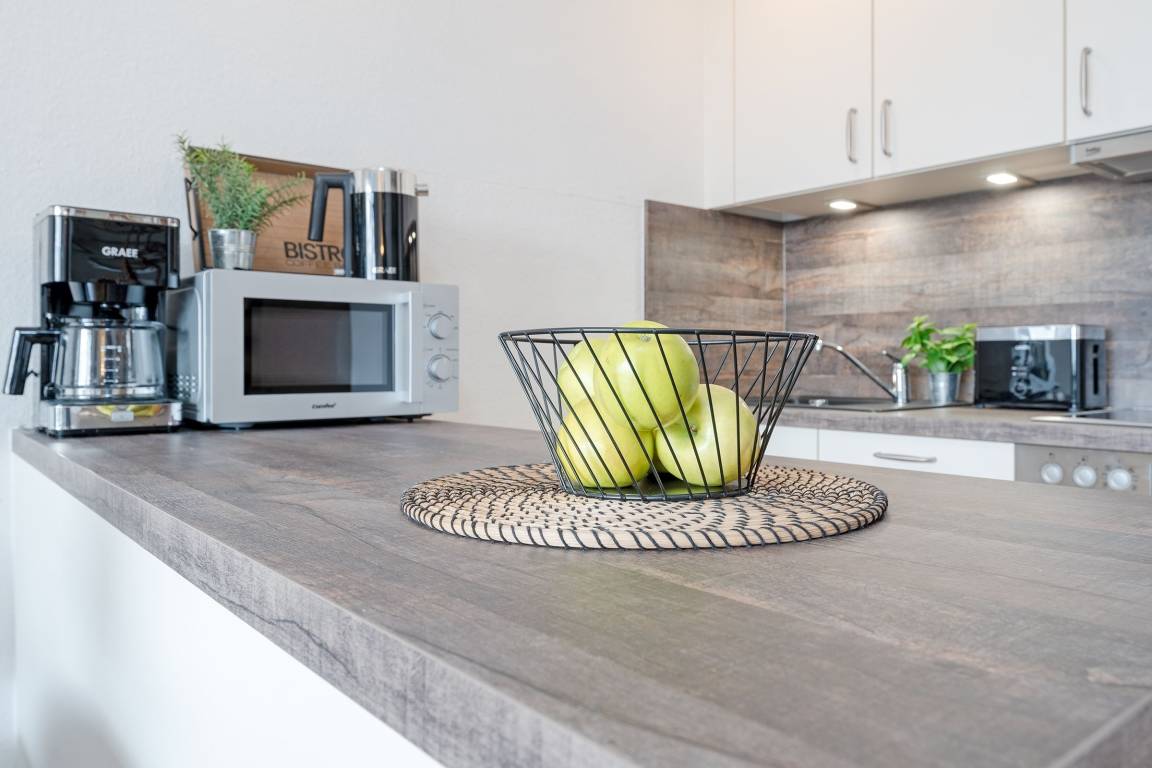 Zwischen Wald und Wellen – die Ferienwohnung Walblick in der Wohnanlage im Schützenweg ist rund 200 Meter von den Ostseewellen entfern. Die liebevoll ausgesuchte Einrichtung sorgt für Behaglichkeit. Das kuschelige Sofa lädt zum Entspannen ein – genauso der möblierte Balkon. Auch im Gemeinschaftsgarten können Sie Ihre Auszeit genießen. Die gute Ausstattung der offenen Küche mit Senseo-Maschine wird Sie erfreuen. Ein Tresen fungiert als Raumteiler, sodass Sie gemütlich am Esstisch speisen können. Nach einem schönen Urlaubstag nächtigen Sie im bequemen Doppelbett (140x190 cm) im Schlafzimmer. Zudem lässt sich die Couch im Wohnzimmer in ein Bett (120x195 cm) verwandeln. Das Bad verfügt über eine Wanne.