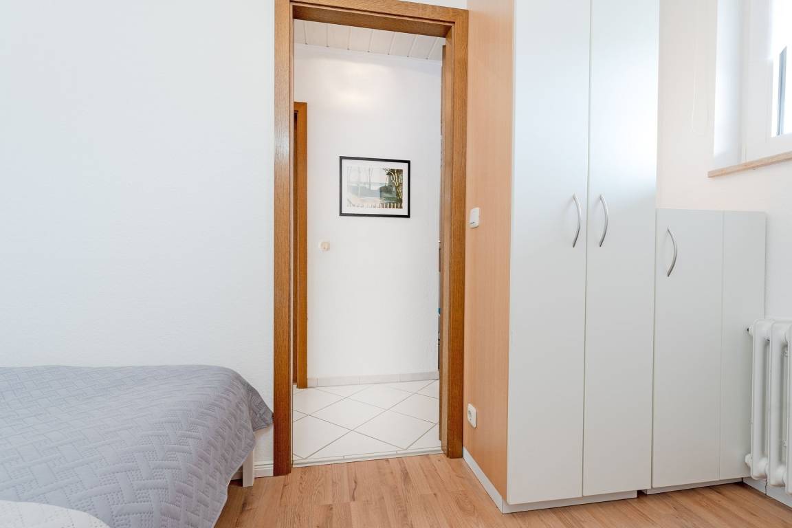 Schlafzimmer: 1 Doppelbett (140 x 190cm), Kleiderschrank, Verdunkelung: Rollo, kein Platz für ein Babybett vorhanden