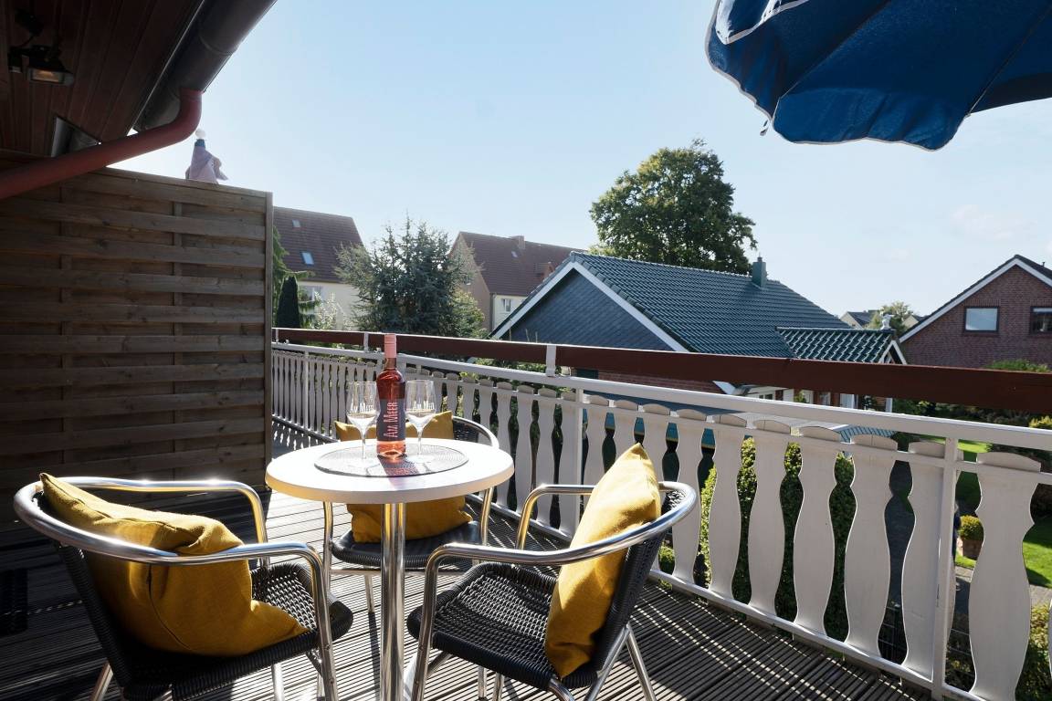 Charmante 3-Zimmer-Ferienwohnung in Kellenhusen im 1. Stock mit 2 Schlafzimmern und Balkon mit Gartenblick. Bis zu 3 Erwachsene und 1 Kind finden auf einer Wohnfläche von ca. 49 m² genug Platz, um sich zu erholen.