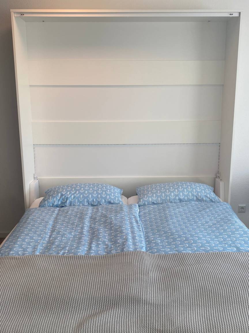 Im Wohn- und Schlafraum steht außerdem 1x großes Schrankbett (180x200) zur Verfügung.