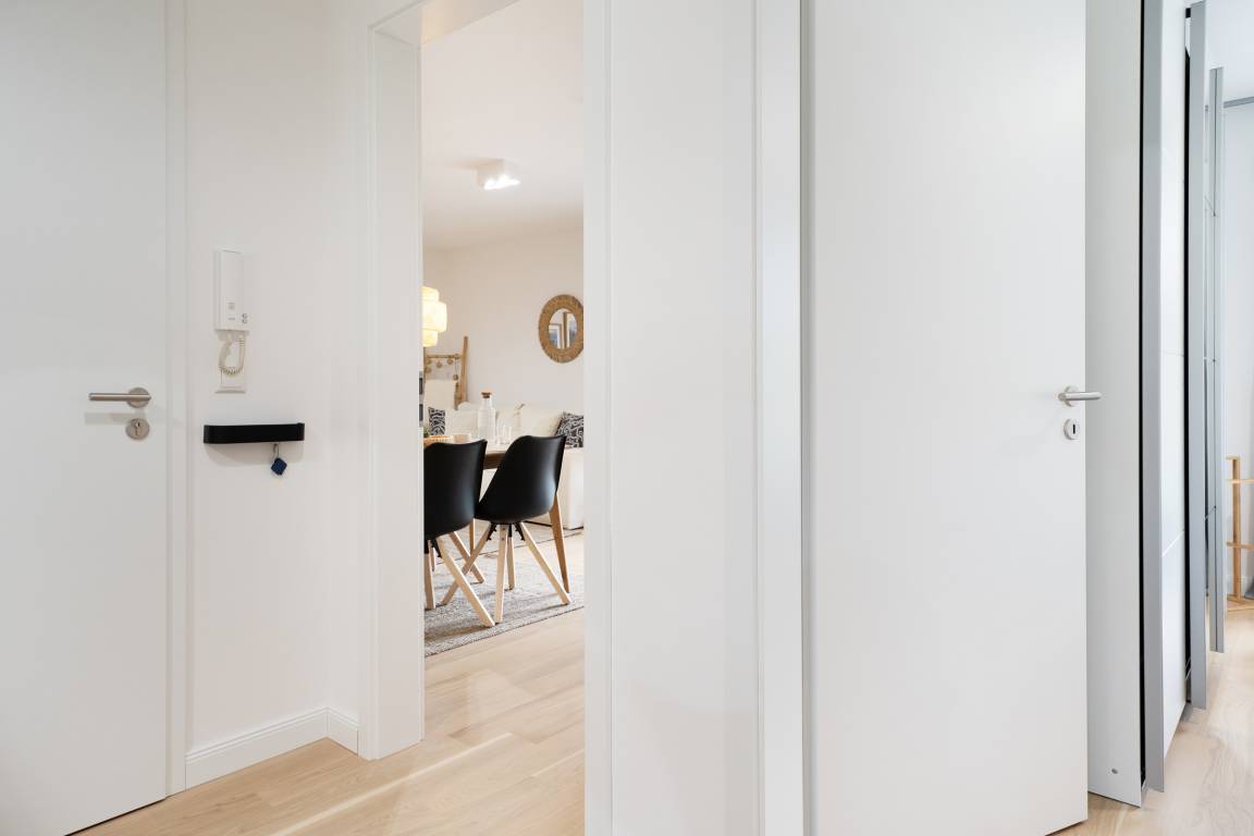 Diese helle und stilvoll eingerichtete Ferienwohnung im Erdgeschoss erwartet Sie mit modernster Ausstattung in traumhafter Lage neben einem Apfelgarten. Der kombinierte Wohn- und Essbereich bietet einen komfortablen Rückzugsort mit Fernseher und direktem Zugang zur möblierten Terrasse – hier können Sie bei frischer Ostseeluft entspannen oder gemütliche Grillabende verbringen.
