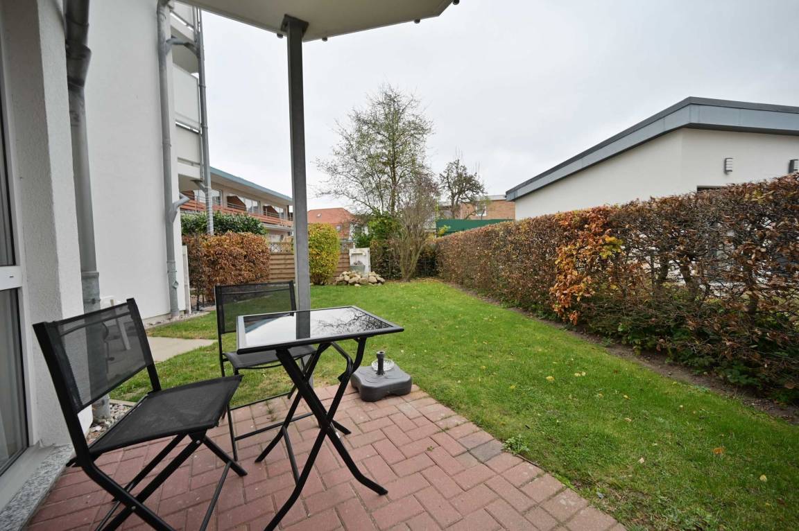 Hübsche 2 Raum Ferienwohnung mit sonniger Terrasse und Garten für bis zu 4 Personen an der Ostsee.