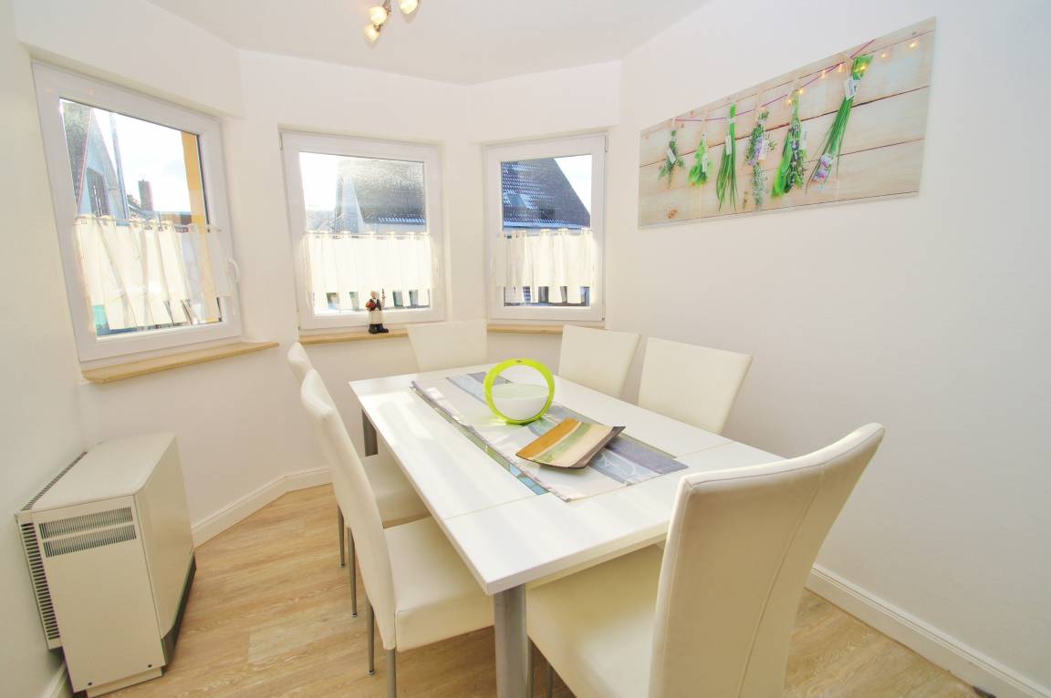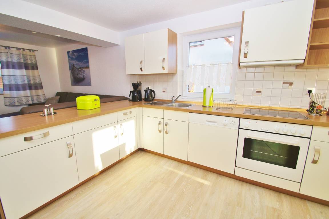 Aufgeteilt ist Ihr Ferienobjekt in Eingangsbereich, Wohnzimmer mit offener Küche, gemütlicher Sitzgarnitunr und Essbereich mit Bestuhlung. Badezimmer mit Dusche und Zugang zur im Keller befindlichen Infrarotsauna mit Realaxliegen und TV im Ruhebereich. Dort können Sie sich komplett erholen. Das separierte WC mit Waschbecken befindet sich im Eingangsbereich des Hauses. Im Obergeschoss befinden sich 2 separate Schlafzimmer. Eines mit Doppelbett (160x200cm) und Kleiderschrank und eines mit 2 Einzelbetten (90x200cm). Die an den Wohnbereich im Erdgeschoss angrenzende möblierte Holzterrasse läd zum erholen und verweilen ein. Ein PKW- Stellplatz ist vorhanden.