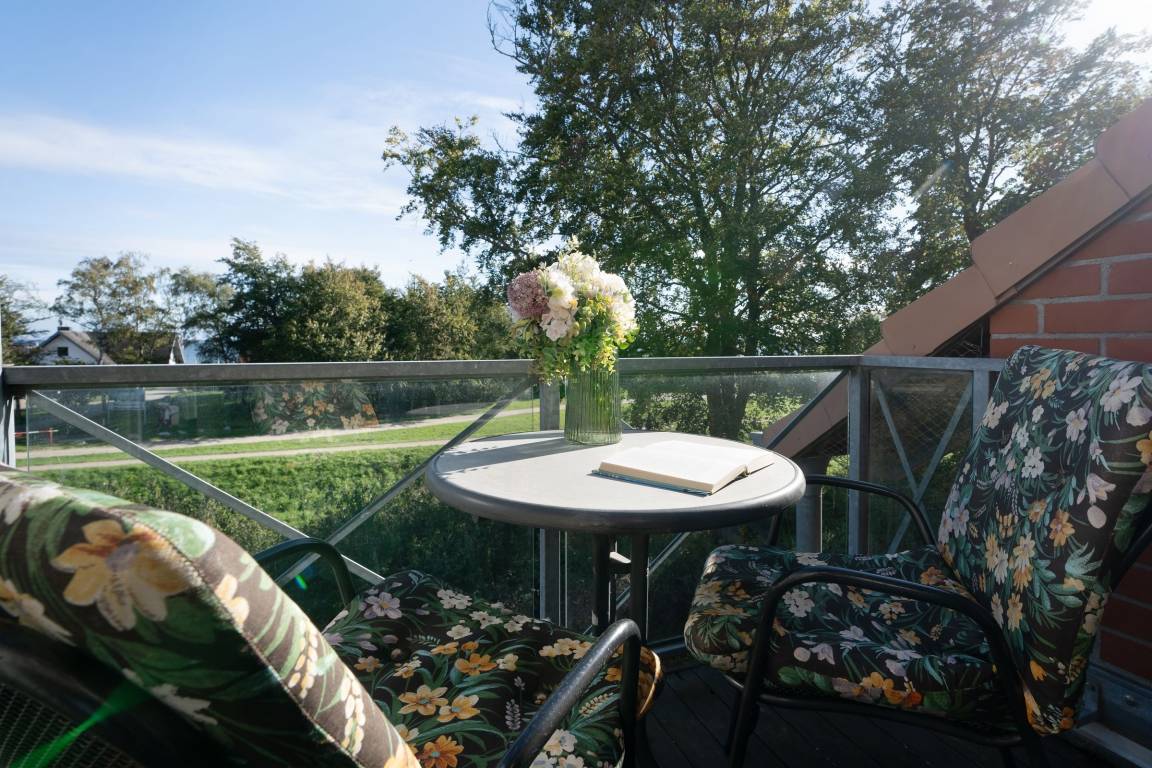 Urlaub in der 1. Reihe von Kellenhusen: Die freundliche 2-Zimmer-Ferienwohnung im Dachgeschoss (2. Stock) ist für bis zu 4 Personen ausgelegt und verfügt über einen Balkon mit saisonal eingeschränktem Teilmeerblick sowie einer Wohnfläche von ca. 48 m².