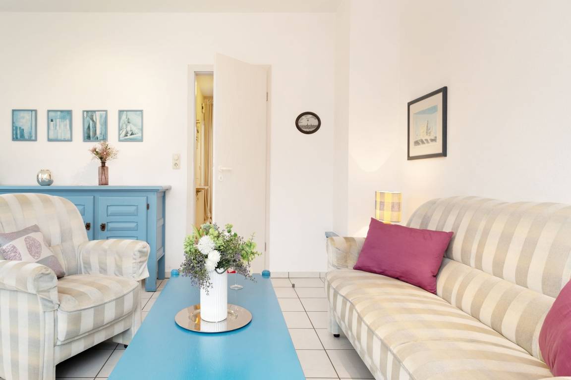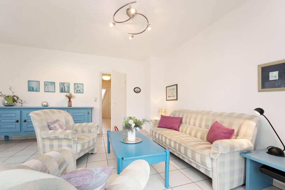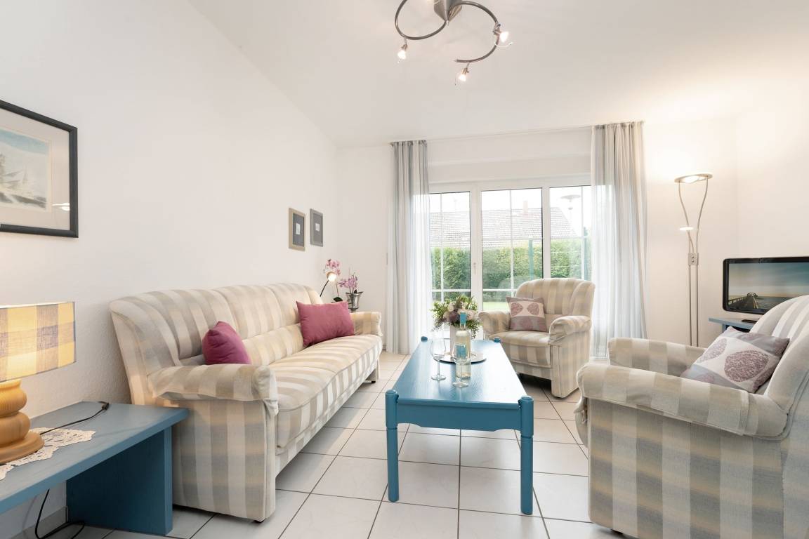 „Sehr ruhige Lage und schöne Terrasse zum Sitzen, empfehlenswert für 2 Erwachsene mit Hund, für 4 Personen Küche und Wohnzimmer zu klein, Gäste WC sehr eng, Duscheinstieg ebenfalls sehr eng, Ausstattung (Küche) in die Jahre gekommen, Betten sehr gut, Sofa und Sessel bequem“