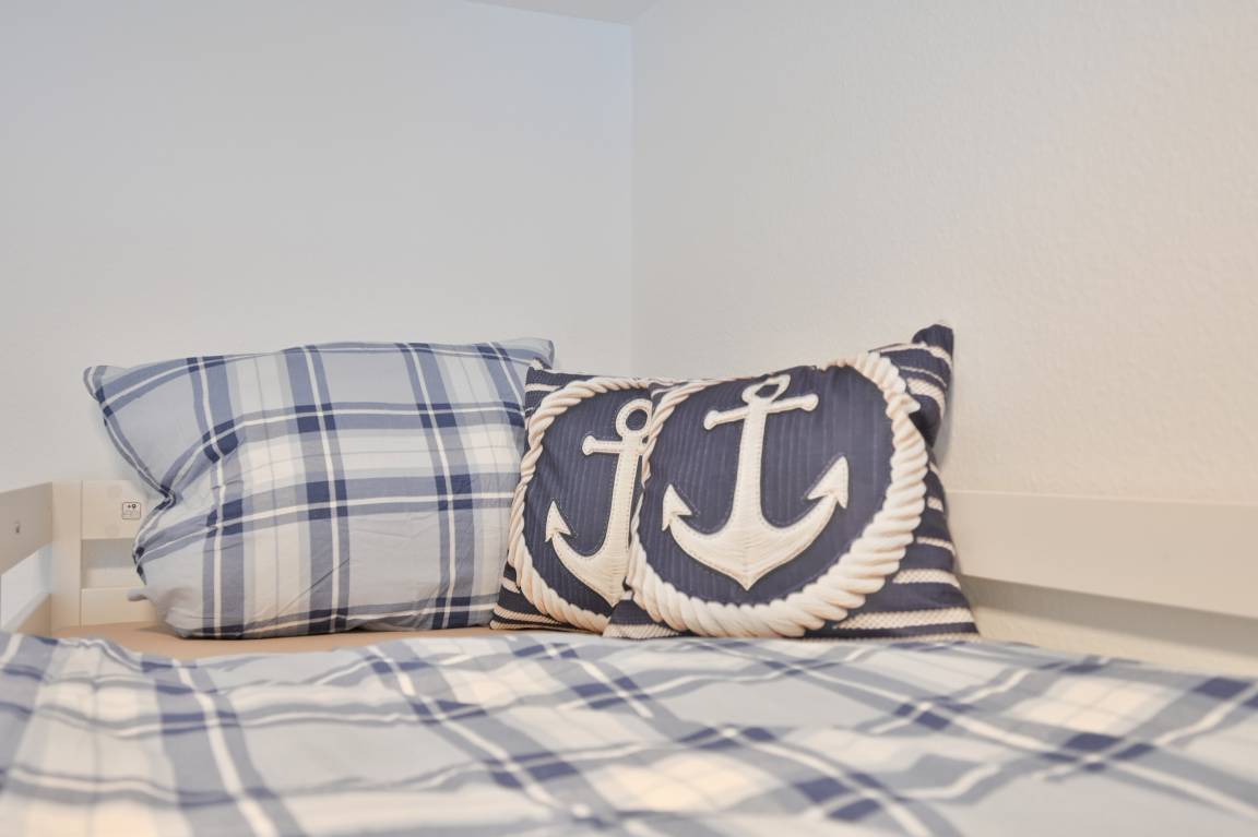 Ein zweites Schlafzimmer mit einem Etagenbett (2 x 90x200 cm) befindet sich im UG, hier können sich max. 1 Erwachsener + 1 Kind durch den Schutz der Rollladen auf ruhige und angenehme Nächte freuen.