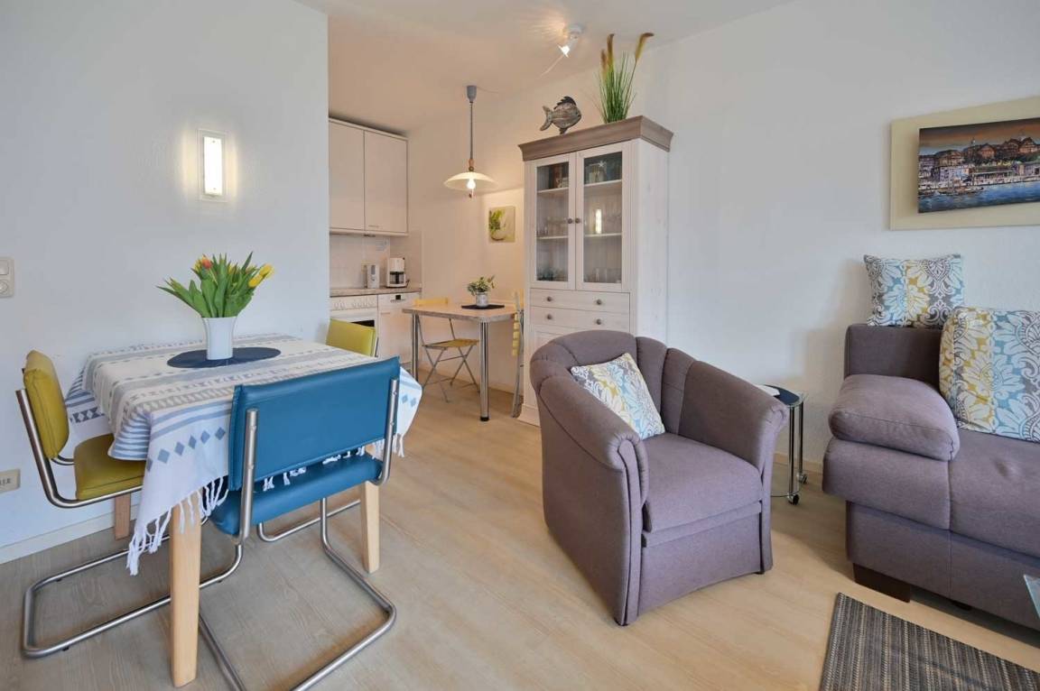 Die ansprechende, ca. 45 qm große 2-Raum Ferienwohnung im Erdgeschoss (Haus 5, Whg. 18 im Kaiserhof) von Margrit Knauff ist komplett renoviert und neuzeitlich eingerichtet. Gäste dieser Ferienwohnung erreichen den Strand und den Ortskern in wenigen Minuten.