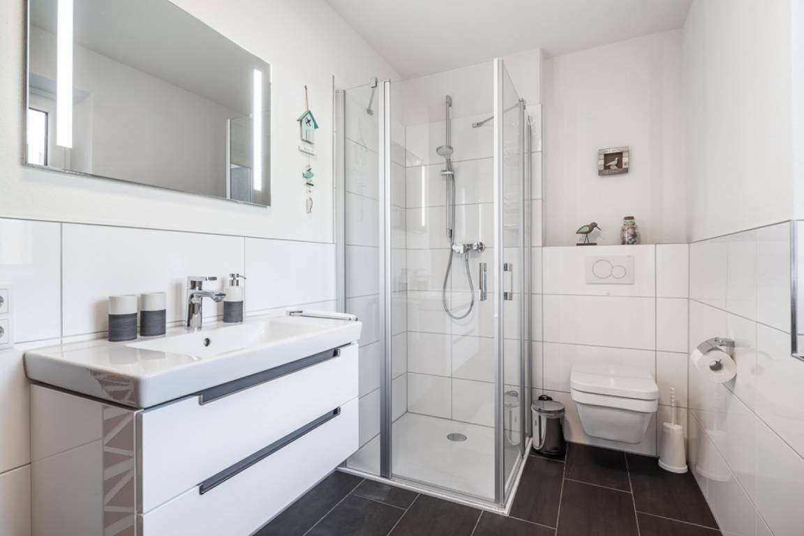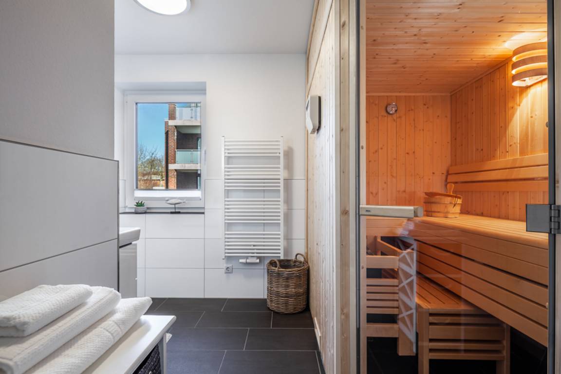Ein hochwertiges Wellnessbad mit eigener Sauna rundet das Angebot ab und sorgt auch in der kalten Jahreszeit für Erholung pur.