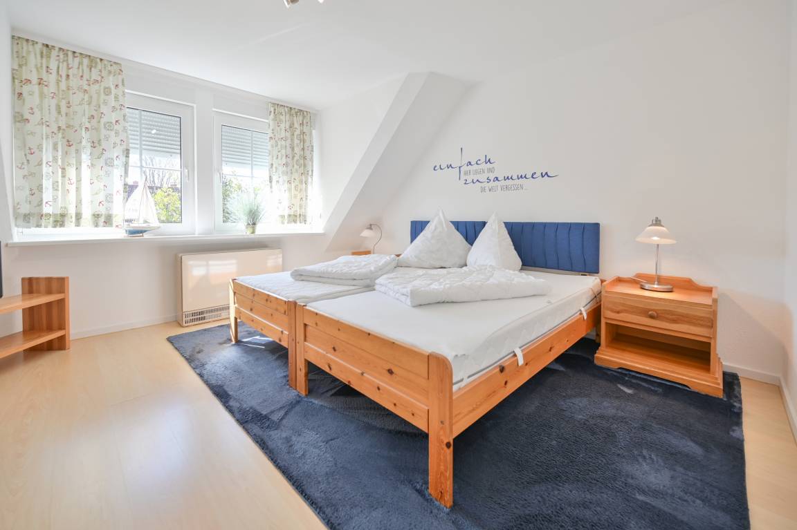 2. Schlafzimmer mit zwei einzelnstehenden Betten und Leseleuchten. Für die zwei Betten gibt es im Objekt auch Bettgitter um den Schlaf für die jüngeren Kinder angenehm zu gestalten.