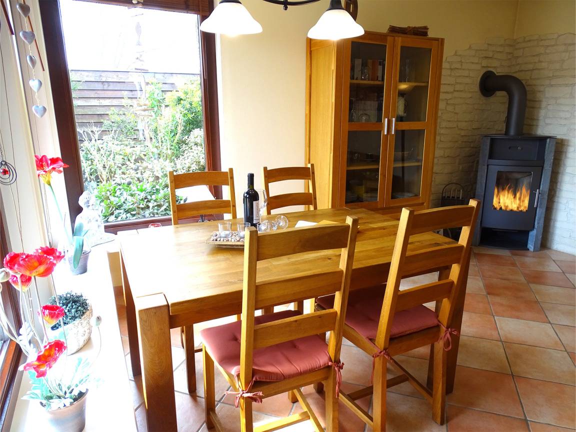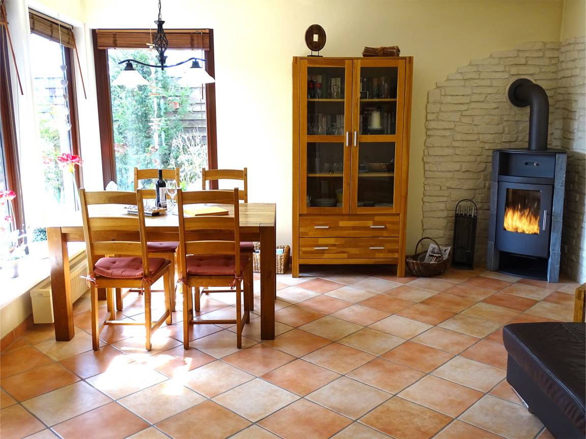 Der großzügige Wohnbereich punktet durch seine liebevoll ausgesuchte Einrichtung: Nehmen Sie Platz auf der bequemen Sofalandschaft und entspannen Sie vor dem TV-Gerät. Der Kaminofen sorgt dabei für eine gemütliche Atmosphäre. Vom Wohnbereich aus haben Sie Zutritt auf die möblierte Terrasse – ist das nicht traumhaft hier? Die hochwertigen Holzmöbel oder auch der Strandkorb laden zum gemütlichen Verweilen ein. Ein gemauerter Grill verspricht leckeres Grillgut und im eingezäunten Garten lässt sich prima Federball spielen. Hier können Sie Ihre Auszeit herrlich genießen. Wer im Urlaub viel Wert auf eine gute Küchenausstattung legt, wird sich freuen. Die separate Küche mit Induktionsherd, Backofen mit Mikrowellenfunktion und Spülmaschine bietet sämtlichen Komfort. Für die Nacht stehen Ihnen zwei Schafräume mit jeweils einem Doppelbett (2x 90x200 cm bzw. 2x 80x200 cm) zur Verfügung. Das tageshelle Duschbad mit bodentiefer Dusche und Handtuchwärmer bietet den Komfort, den man sich im Urlaub wünscht. Freuen Sie sich auf ein wunderbares Haus zwischen Wald und Meer.