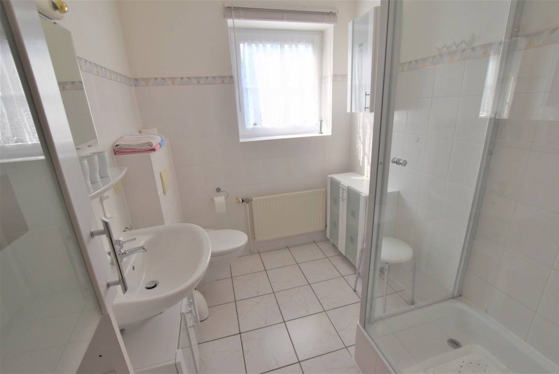 „Ein Makel ist das sich das Badezimmer zwischen den beiden Schlafzimmern befindet und nicht gut gedämmt ist. Man hört in den Schlafzimmern alles was im Badezimmer passiert.“