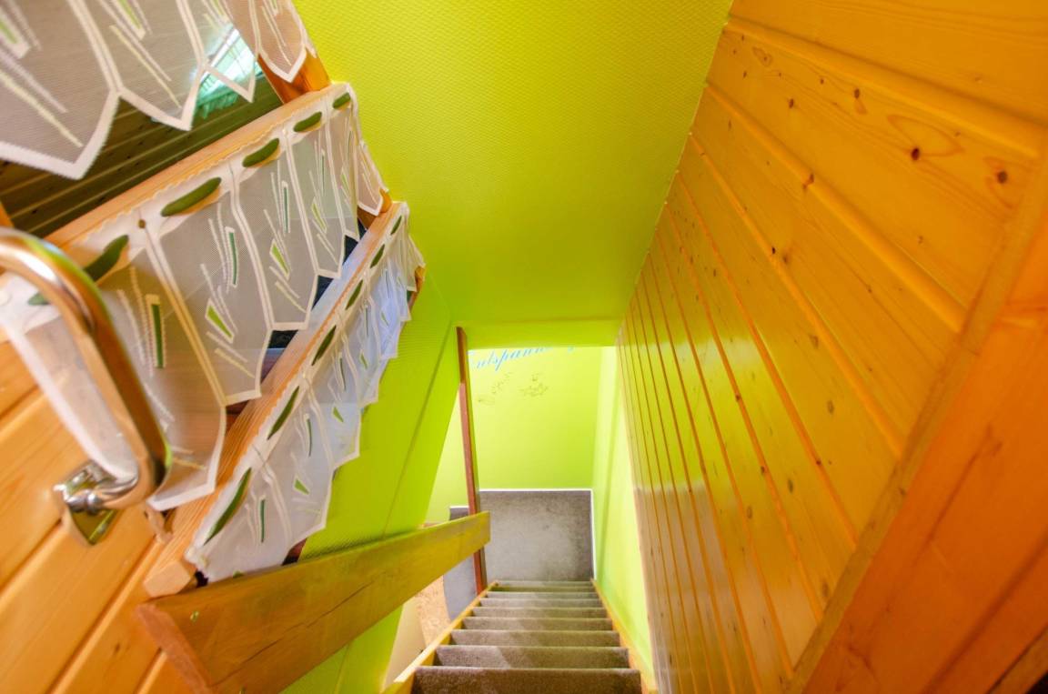 „Es hat uns sehr gut gefallen. Ein Hinweis: Die Treppe zu den Schlafräumen im DG ist für ältere Menschen nicht zu überwinden, da diese zu steil und zu eng ist. Diese kann abwärts nur rückwärts gefahrenfrei genutzt werden. Aber wir haben es geschafft. Ansonsten war die Unterkunft schön.“