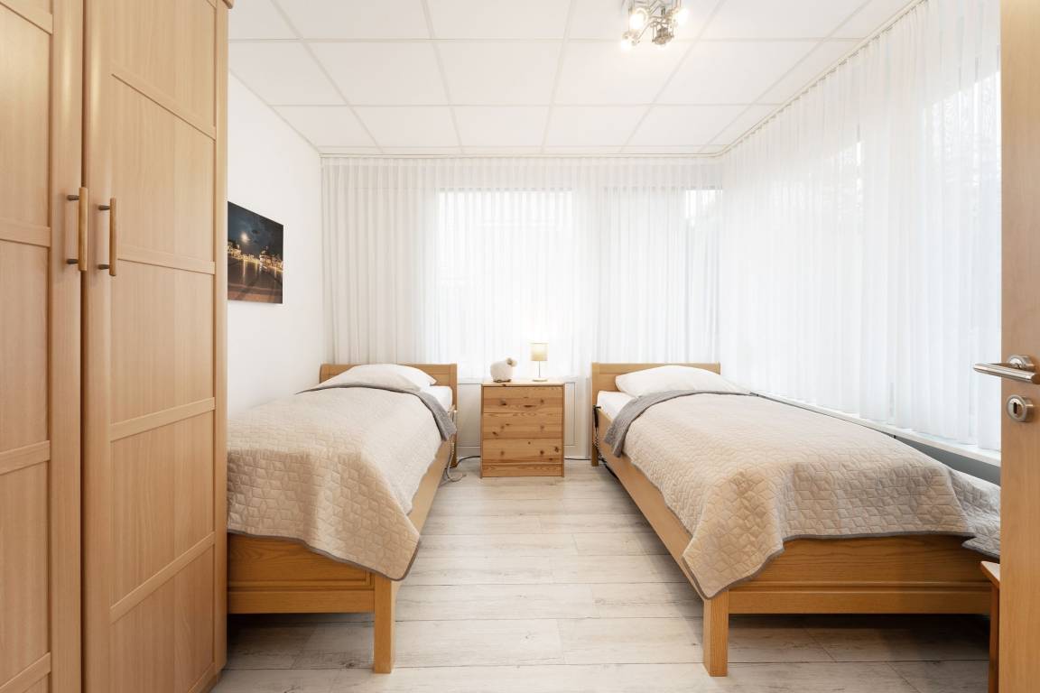 Schlafzimmer 2: 2x Einzelbetten (2x 100x200 cm), Kleiderschrank, TV, Verdunkelungsmöglichkeit: Rollläden, kein Platz für Babybett vorhanden