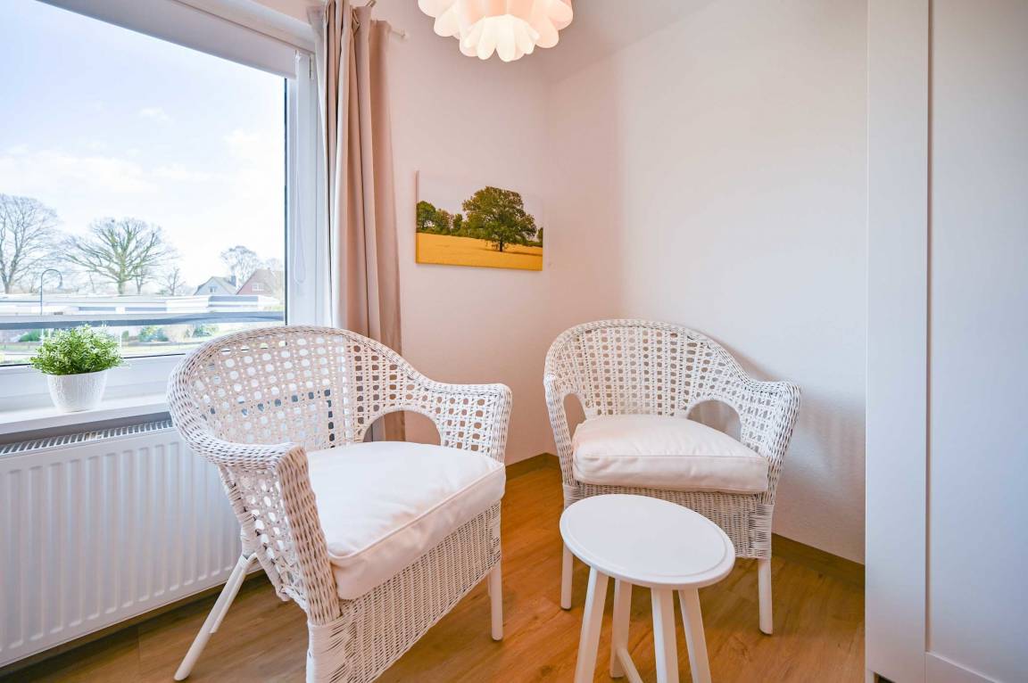 „Kurz ein kleines Manko: Leider funktioniert die Internetverbindung vor allem abends nicht besonders, so dass der Fernseher mehr oder weniger unbrauchbar ist. Die Kinder hätten gerne Abends noch einen Film aus der Mediathek geschaut. Sonst alles prima. Vielleicht kann man da an der Signalstärke noch was machen?! Sonst haben wir nur einen kleinen Verbesserungs Vorschlag: In der Küche fehlen ein paar kleine Löffel... Da sind wohl schon einige abhanden gekommen. Und die Pfanne würde ich austauschen, da sind starke Kratzer im Teflon. Etwas ungesund, wenn man darauf Wert legt. Es fehlt allerdings auch ein einfacher Pfannenwender aus Holz. Insgesamt sehr schön gelegene und gut ausgestattete Wohnung. Die Terrasse ist viel schöner als im Internet abgebildet. Man kann sie hervorragend nutzen und morgens herrlich frühstücken. Die Einrichtung ist modern, die Bäder neu und sauber. Es ist alles da was man braucht. Sogar ein Staubsauger und viele Kleiderbügel. Besen, Wäscheständer etc. Haben uns insgesamt sehr wohl gefühlt. Ruhige Wohnlage und nur wenige Meter bis zum Spielplatz bzw. Strand. Sehr zu empfehlen. Danke für die schöne Zeit. Gerne mal wieder.“