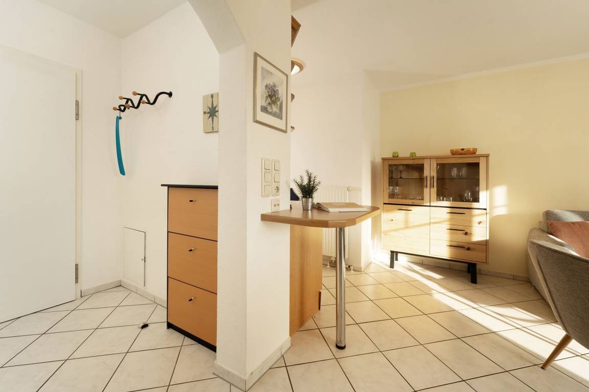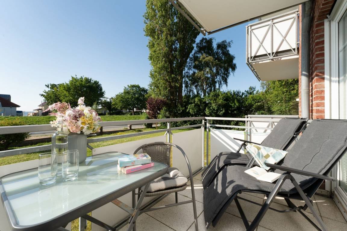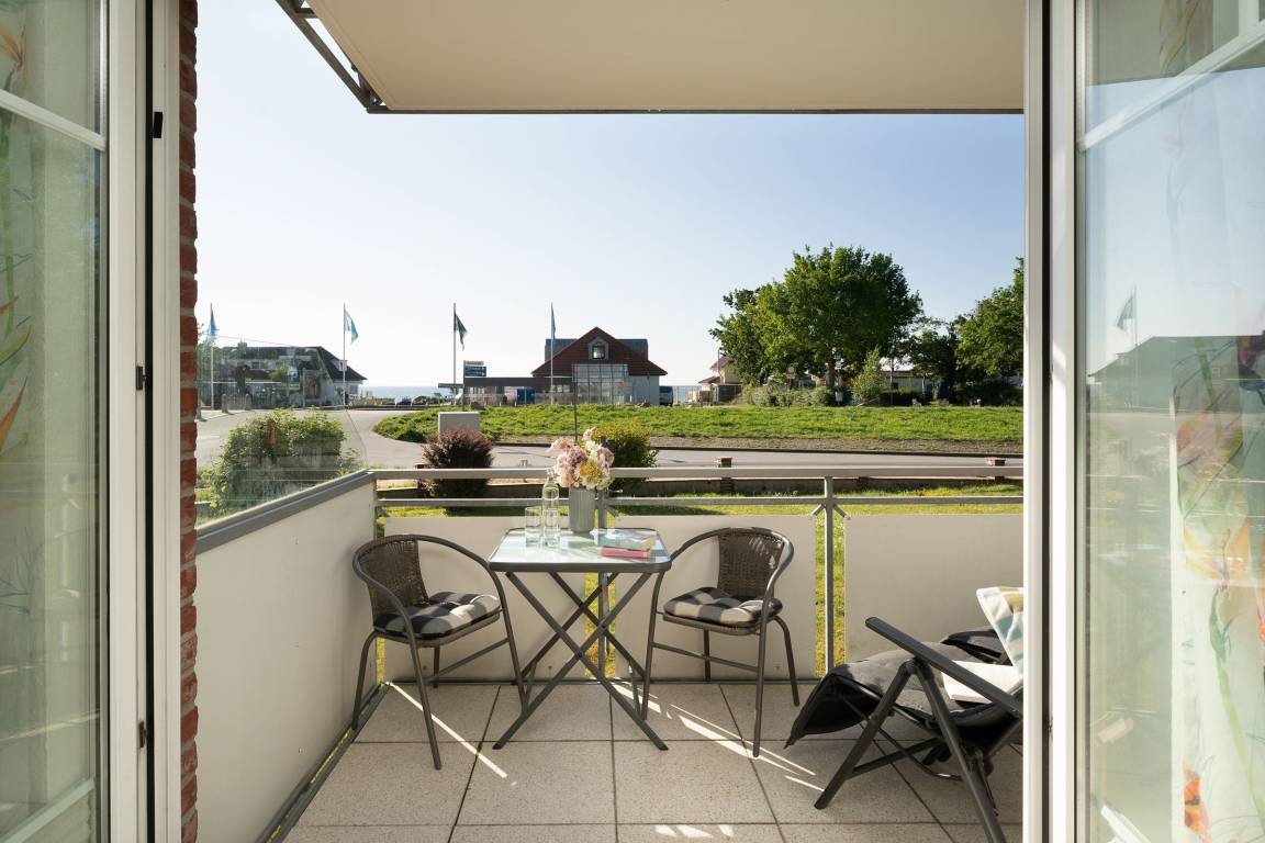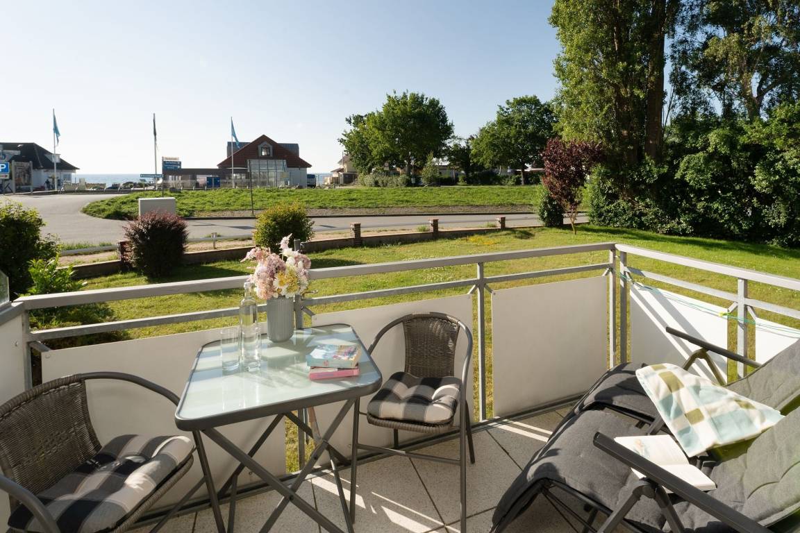 Stellen Sie sich vor, Sie treten morgens auf den Balkon und können die Ostsee sehen. Die Wellen hören. Die Seeluft schnuppern ... das alles ist in dieser wunderschönen Wohnung in der Anlage Strandresidenz möglich. Im kombinierten Wohn-/Ess-Bereich begrüßt Sie die kuschelige meeresblaue Polster-Garnitur. Bei der Couch handelt es sich um eine Doppelbettcouch, die bei Bedarf zum Schlafplatz (ca. 140x200 cm) für 2 Personen umfunktioniert werden kann. Nehmen Sie Platz und verbringen Sie entspannte Abende vor dem TV-Gerät. Gleich daneben haben Sie Zutritt auf den möblierten Balkon. Hier sitzen Sie in der ersten Reihe und können die Ostsee ganz nah erleben. Einfach traumhaft. Das wird sicher Ihr neuer Lieblingsplatz. Die helle Küchenfront integriert sich wunderbar in den Wohnbereich. Hier finden Sie eine gute Küchenausstattung und können nach Herzenslust Ihre Speisen zubereiten. Raffiniert ist der Tresen seitlich an der Küchenzeile. Gut sitzen und speisen können Sie in der Ess-Ecke in der Mitte des Raumes. Für die Nachtruhe steht Ihnen ein Schlafzimmer mit Doppelbett (2x 90x200 cm) zur Verfügung. Das Duschbad ist hell gefliest und verspricht einen guten Start in den Tag. Im Keller des Hauses befinden sich Münz-Waschmaschinen und Münz-Trockner.