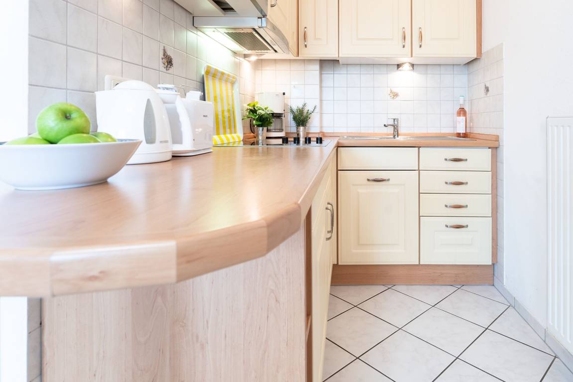 „Die Wohnung hat eine sehr gute Lage, die Größe der Wohnung ist gut. Nachteil leider gibt es keinen Geschirrspüler, und die einfachsten Dinge (Spülbürste) war leider auch nicht da.“