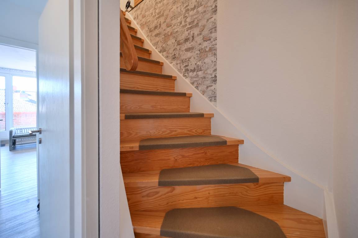 unsere geräumige Ferienwohnung über 2 Etagen, nur 300 Meter von der malerischen Strandpromenade in Kellenhusen entfernt.