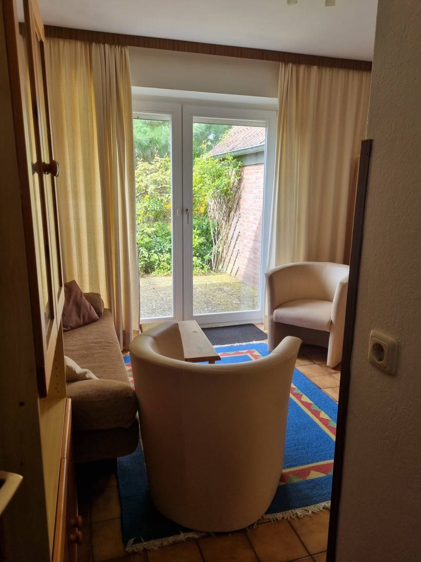 In der gemütlichen 42 m² großen Ferienwohnung in Kellenhusen gelangt man über den Flur in ein helles Wohnzimmer, welches mit einer gemütlichen Couch und einem einladenden Essbereich ausgestattet ist. Ebenfalls hat das Wohnzimmer ein Radio und einen Fernseher zu bieten. Eine offene Küchenzeile rundet den Wohnbereich ab. Von da aus gelangt man auf die Terrasse und in den Garten. Vom Flur aus führt der Weg in ein kleines Badeszimmer und 2 harmonische Schlafzimmern mit Einzelbetten, welche alle Standards erfüllen. Über die Terrasse gelangt man in den Garten, welcher komplett bepflanzt ist und das idyllische Gesamtbild abrundet. Zudem bietet die Ferienwohnung kostenlose Parkmöglichkeit und einen Fahrradabstellraum, der bei Bedarf genutz werden kann.