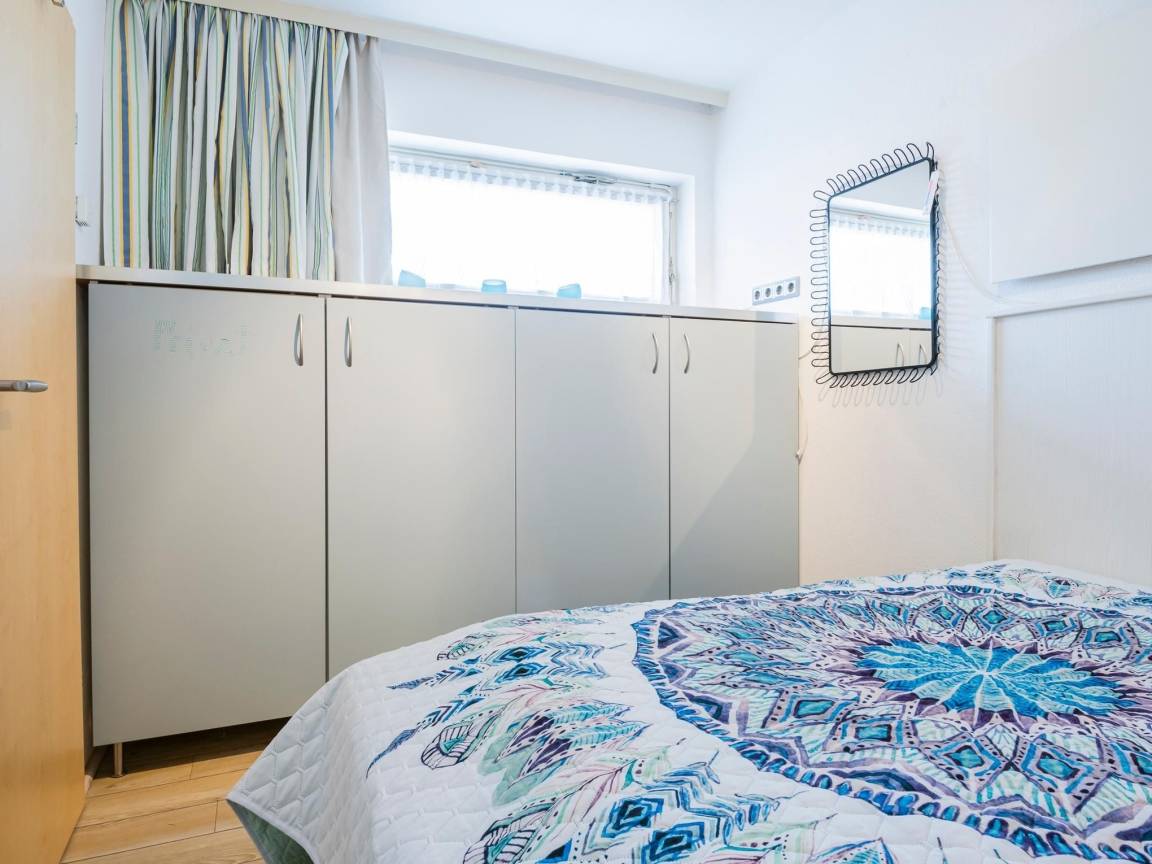 Herzlich willkommen! Die charmante Wohnung mit dem schönen Namen Kleine Auszeit befindet sich in der gepflegten Wohnanlage Haus Sol Mare. Der helle Wohn-/Schlafbereich verfügt über eine Eckcouch mit Schlaffunktion (140x200 cm) und eine Essecke. Zudem ist die Küche in den Wohnbereich integriert, Extras wie Mikrowelle, Geschirrspüler, Heißluftfritteuse, Kaffeefilter- und Kaffeekapselmaschine erleichtern die Selbstversorgung. Ihre Urlaubsstunden können Sie auf dem überdachten Balkon gut geschützt genießen. Ein kleines separates Schlafzimmer, das mit zwei Einzelbetten (je 90x200 cm) ausgestattet ist, verspricht geruhsame Nächte. Das Duschbad ist hell gefliest.