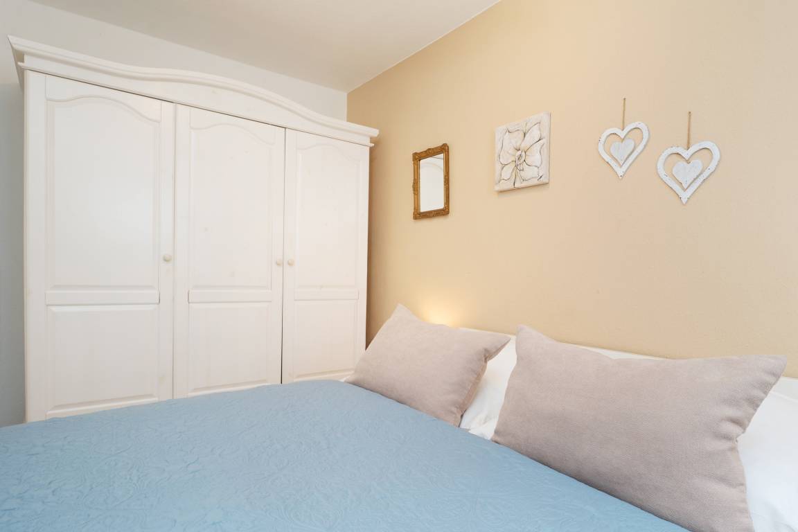 Schlafzimmer: 1 Doppeltbett (2x 80 x 200 cm), Kleiderschrank, Verdunkelung: Plissees und Vorhänge, Platz für ein Babybett vorhanden