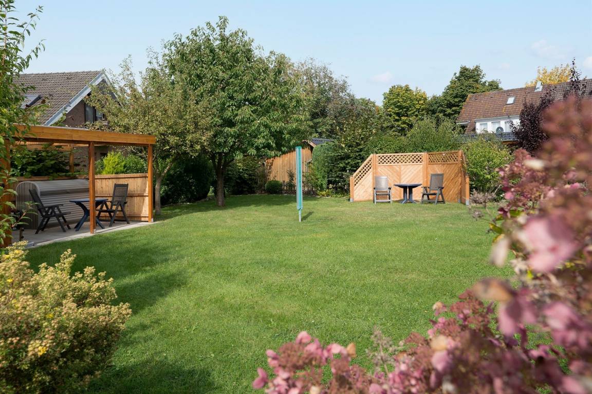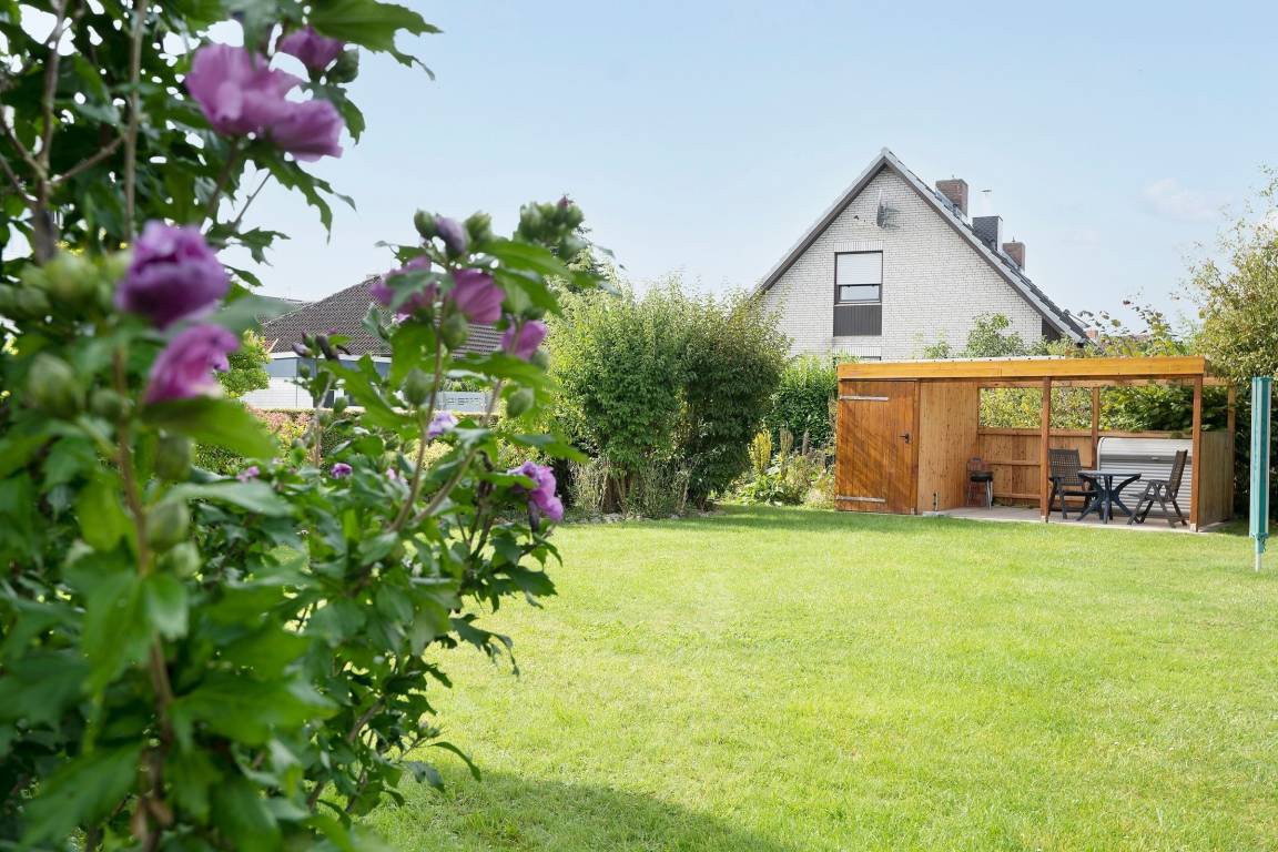 „Die Wohnung ist klein aber fein. Hat eine schöne Terrasse. Für 3 Personen auf längere Zeit etwas eng. Es gehört ein großer sehr gepflegter Garten dazu der mit genutzt werden kann. Dort steht ein Grill und ausreichende Sitzmöglichkeiten bereit.“