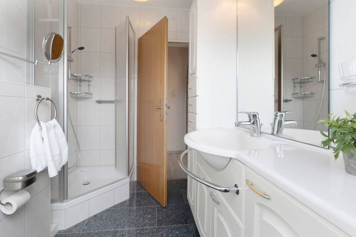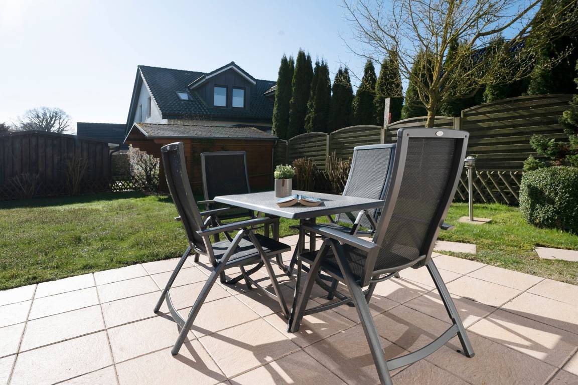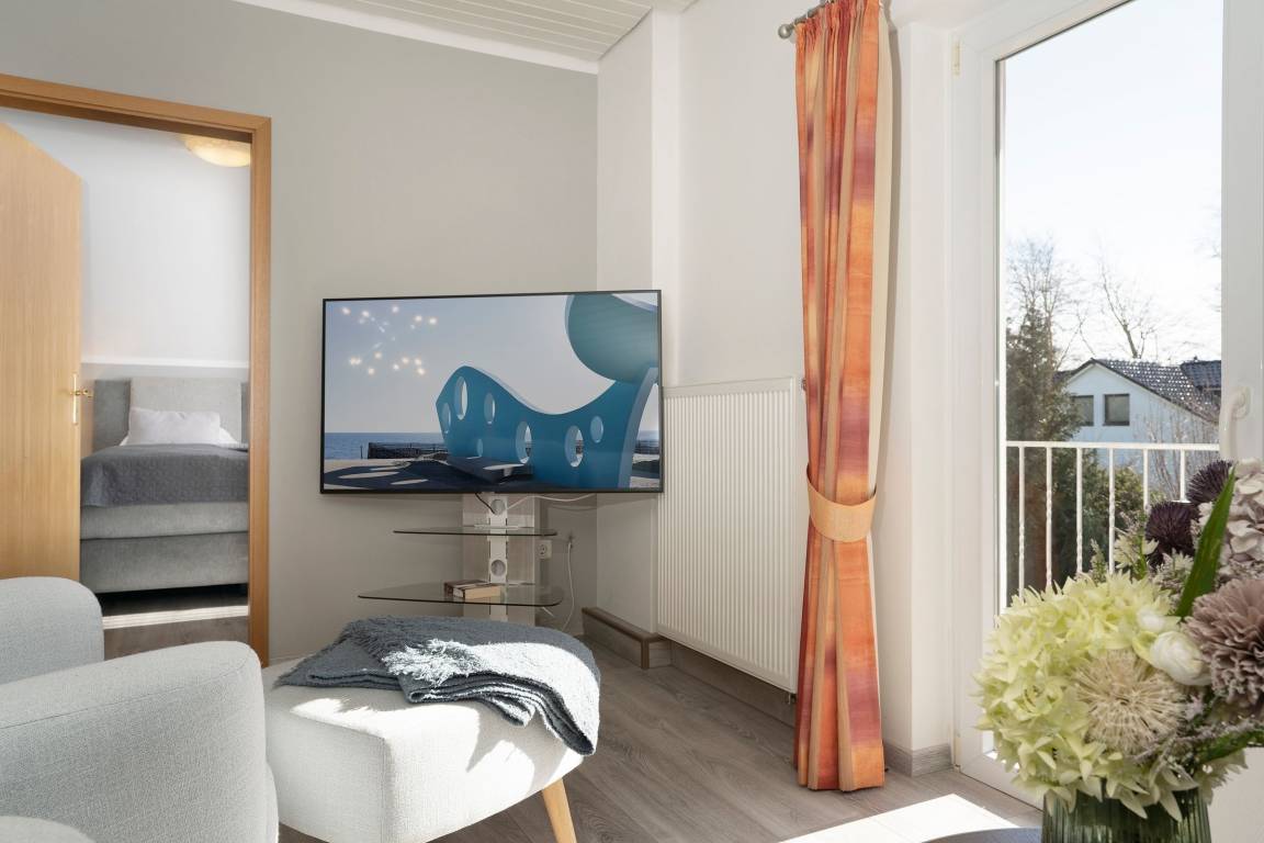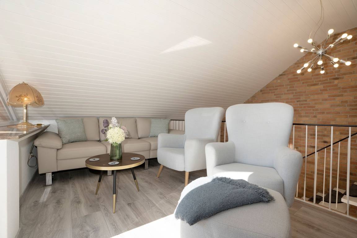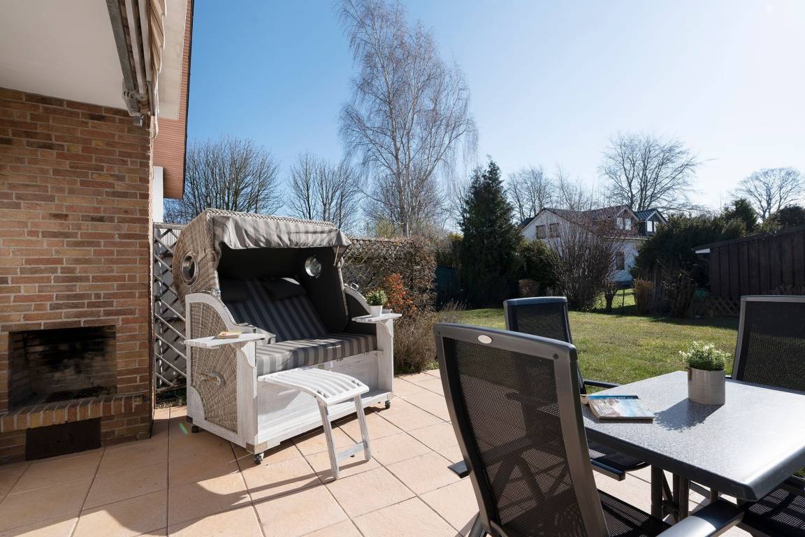 Diese gemütlich eingerichtete Ferienwohnung empfängt Sie direkt im Erdgeschoss gelegenen Wohnbereich mit großzügigem Essbereich und Zugang zur möblierten Süd-West-Terrasse mit eigenem Strandkorb. Direkt nebenan befindet sich die umfassend ausgestattete Küche, in der Sie sich im Urlaub gut selbst versorgen können. Die Treppe führt Sie in die obere Etage, wo sich auch die beiden Schlafzimmer befinden. Hier stehen zwei Einzelbetten (80x200 cm) und ein Doppelbett (2x 90x200 cm) für die Erholung zur Verfügung. Das Wohnzimmer mit eigenem Balkon, Smart-TV und gemütlichem Sofa befindet sich auch auf dieser Etage. Das Tageslichtbad umfasst neben einer bodengleichen Dusche unter anderem einen beheizbaren Handtuchhalter für das Urlaubsgefühl.