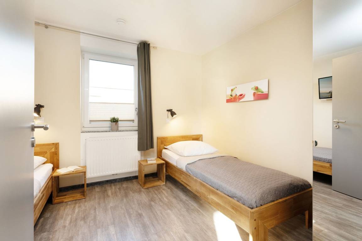 Schlafzimmer 2: 2 Einzelbetten (2x 90x200cm), Plissees - Verdunkelungsvorhänge
