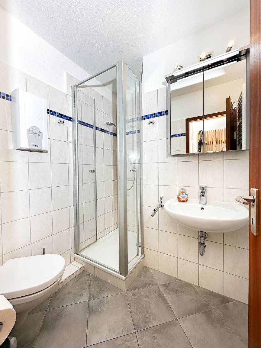 Die ca. 45 m² große 1-Raum-Wohnung mit WLAN und freiem Telefon in das deutsche Festnetz ist hell und modern eingerichtet. Sie ist mit Laminat ausgelegt und bietet Platz für 2 Personen + Kleinkind.