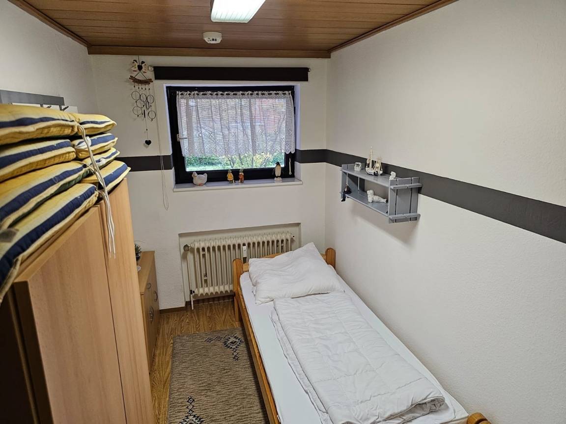 Im Schlafzimmer stehen 2 Einzelbetten bereit (2x 0,90x2 Meter). Im Wohnzimmer lädt ein zusätzliches Schrankbett zum Ausschlafen ein (2x90 x 1.90m)