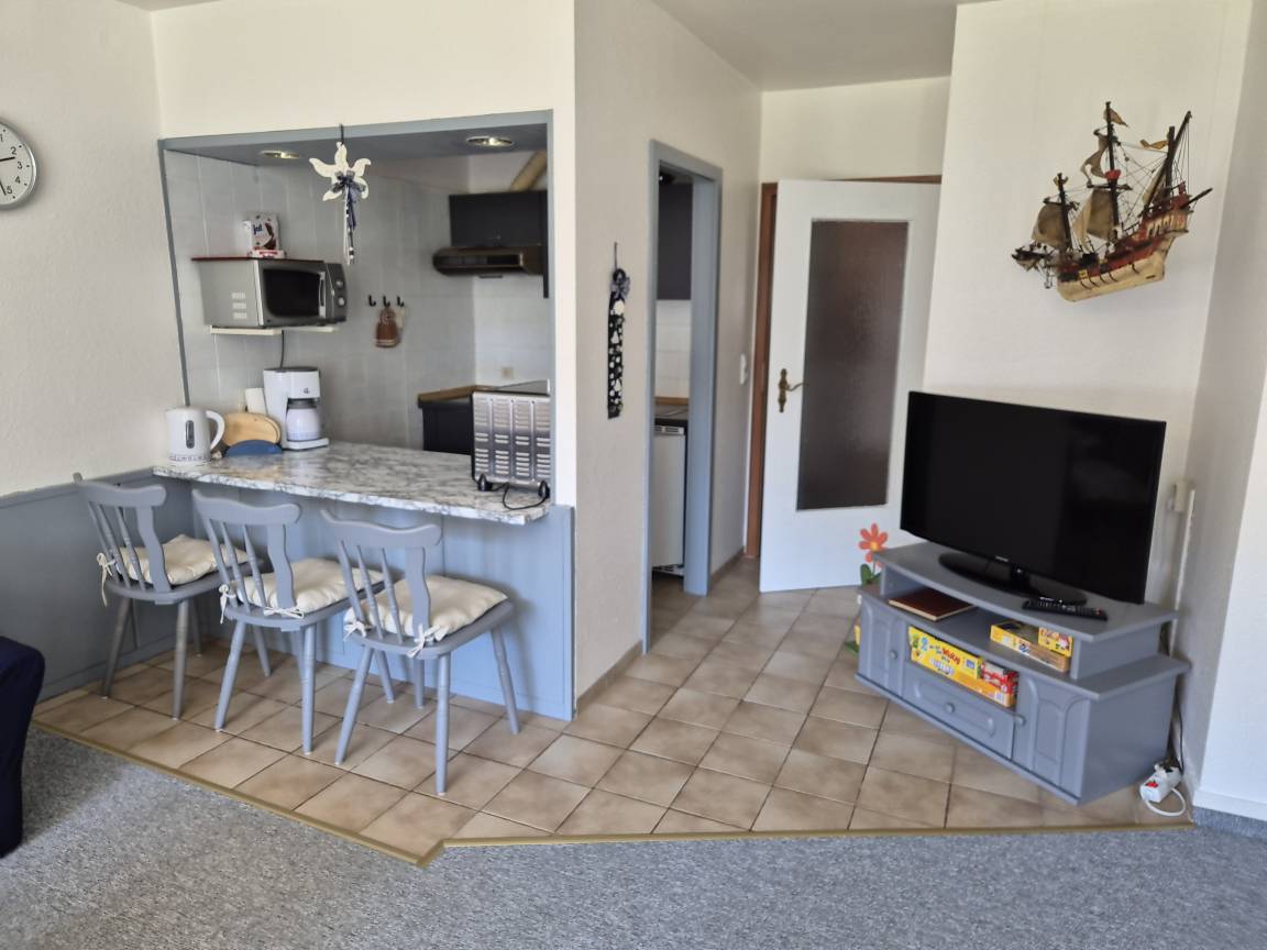 Ein gemütliches Sofa mit Blick auf den LCD Flachbildschirm lädt an regnerischen Tagen zum verweilen ein, sowie auch Gesellschaftsspiele für die Kleinsten.