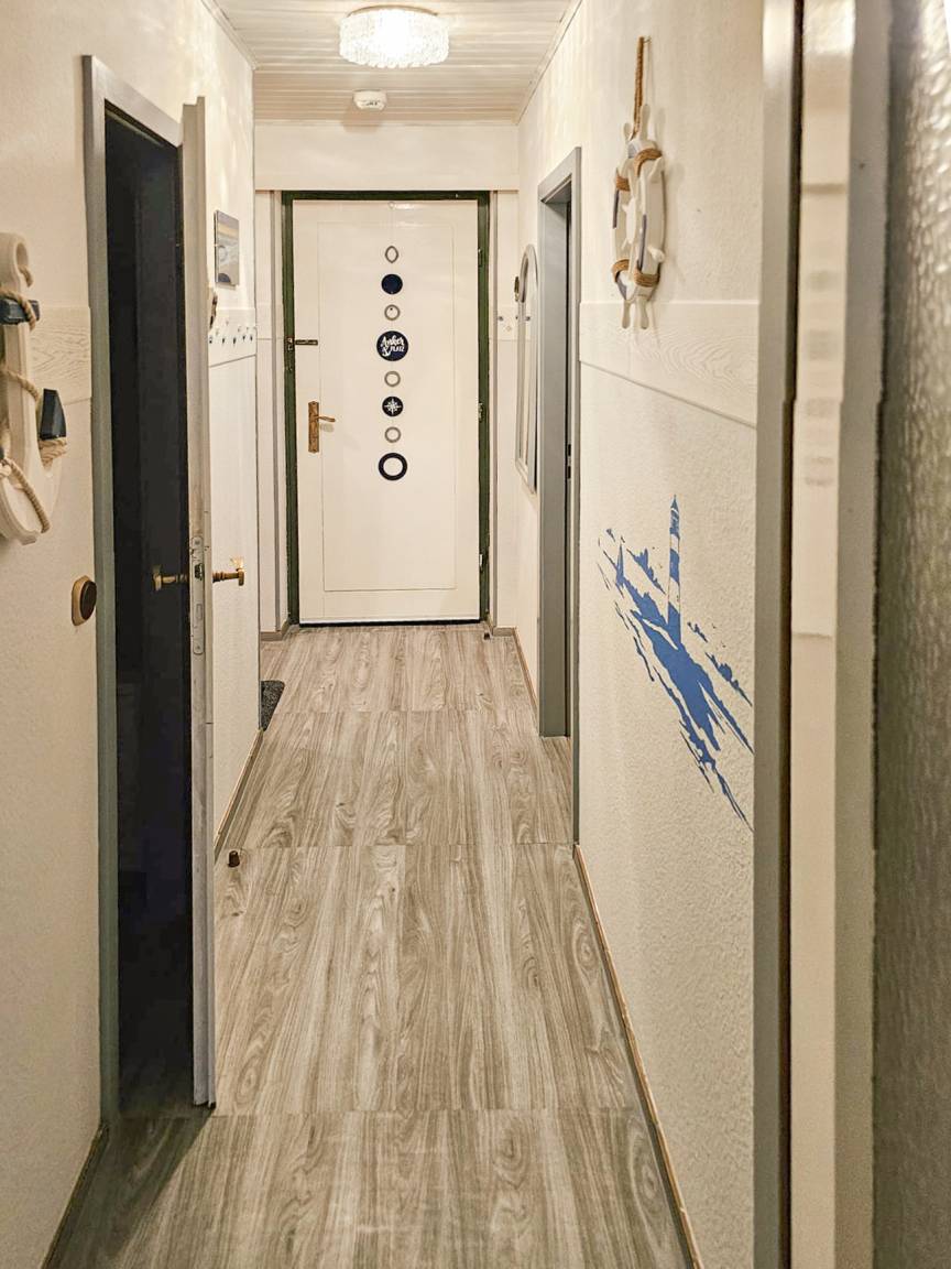 Die Wohnung wird durch einen einladenden Flur betreten.