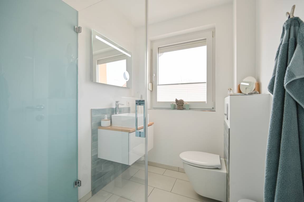 Das neue Badezimmer ist mit WC und Dusche eingerichtet.