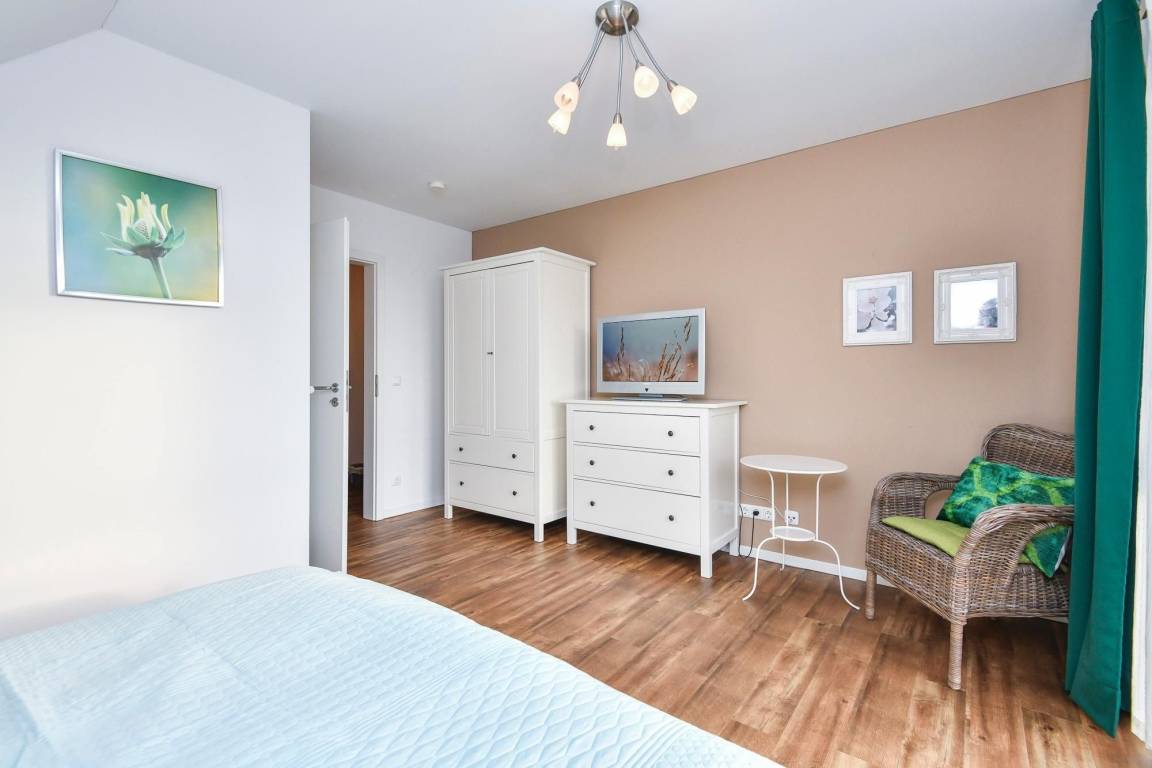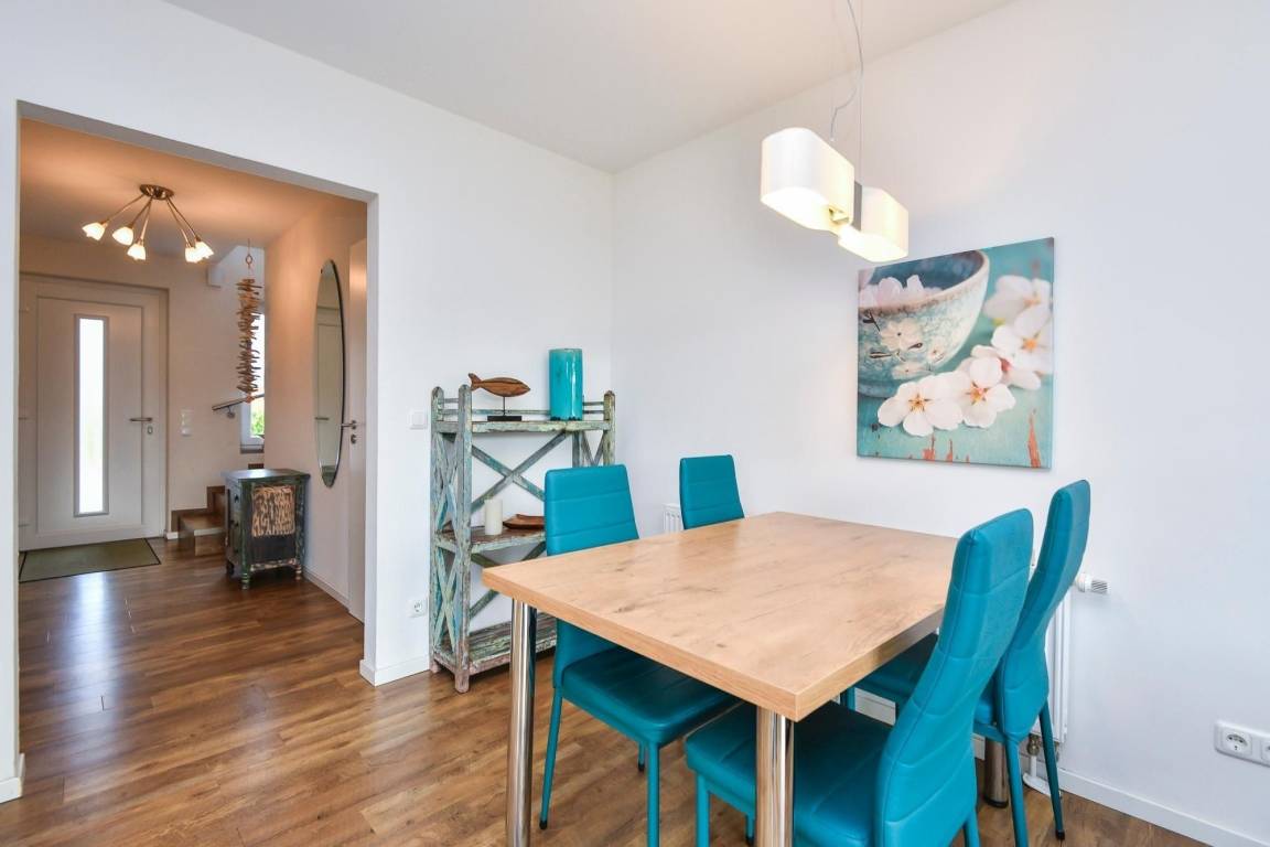 Der Name ist Programm: Das Haus Glücksmomente, in dem sich die Doppelhaushälfte Felix befindet, schenkt seinen Bewohnern eine Extra-Portion Glück und sorgt bestimmt für einen fantastischen Urlaub. Im Erdgeschoss empfängt Sie eine komfortable Sofa-Landschaft sowie ein Relaxsessel mit Hocker – wahlweise mit dem Blick aufs TV-Gerät oder ins Grüne. Genießen Sie eine ausgiebige Runde Federball im gemeinschaftlich genutzten Garten oder entspannen Sie in der Sonnenliege auf der wohnungseigenen Terrasse. Und für gemütliche Grillabende steht ein Gemeinschaftsgrill zur Verfügung. Zurück im Wohnbereich: Die gut ausgestattete Küche mit Geschirrspüler ist offen gestaltet und lädt zum gemeinsamen Kochen ein. Probieren Sie hier neue Rezepte aus der Region aus und nehmen Sie anschließend in der Ess-Ecke Platz. Weiterhin finden Sie im Erdgeschoss ein Gäste-WC. Zum Schlafen geht es für Sie nach oben: Das Dachgeschoss verfügt über ein Schlafzimmer mit Doppelbett (2x 90x200 cm) und TV-Gerät, ein Schlafzimmer mit 2 Einzelbetten (je 90x200 cm) sowie ein helles Duschbad mit Fenster und Waschmaschine. Eine Fußbodenheizung im Wohnbereich und im Badezimmer sorgt für wohlige Wärme.