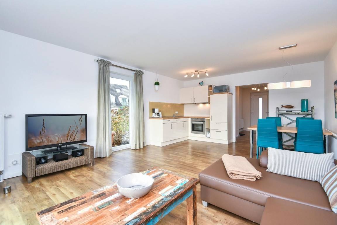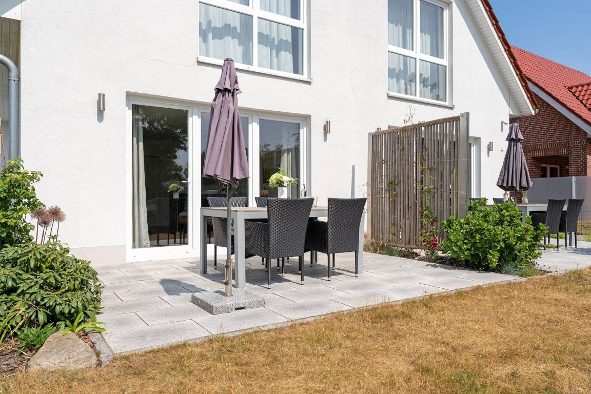 Helle 3-Zimmer-Doppelhaushälfte mit Süd-Terrasse und Gemeinschaftsgarten in Kellenhusen in Waldnähe. Auf einer Wohnfläche von ca. 69 m² finden hier bis zu 4 Personen plus Baby wunderbare Erholung.
