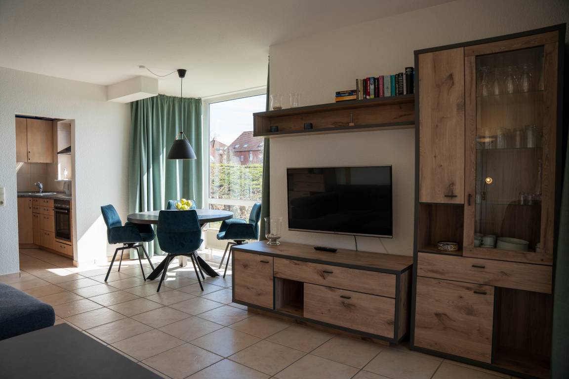 Ein schönes und modernes Reihenendhaus am Wintershörn in Kellenhusen mit folgender Aufteilung: 1 Wohnzimmer mit Eckcouch, Flachbild-TV, Telefon, Essecke im Erker, Terrasse; 1 sep. Küche komplett ausgestattet u.a. mit Kaffeemaschine, Toaster, Geschirrspüler, Mikrowelle, Backofen, Wasserkocher, Kühlschrank mit Gefrierfach etc.; 1 Gäste/WC. Im Dachgeschoss befinden sich: 1 Schlafzimmer mit Doppelbett, 1 separates Schlafzimmer mit getrennt stehenden Betten; 1 Dusche/WC mit Waschmaschine (gegen Gebühr/Münzautomat).