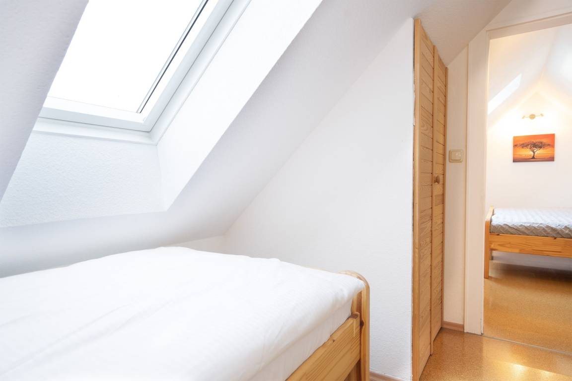 Schlafzimmer 2: 2 Einzelbetten (je 90x200 cm), Kleiderschrank, Verdunkelungsmöglichkeit