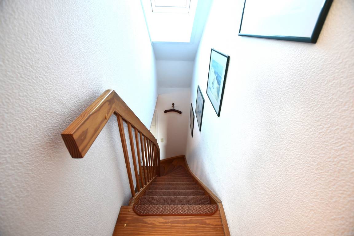 Auf derselben Etage befinden sich die platzsparende Küche mit Induktionsherd und Geschirrspüler sowie das zweckmäßige Duschbad. Zum Schlafen geht es innerhalb der Wohnung mit einer Treppe ins Dachgeschoss. Hier stehen Ihnen zwei separate Schlafzimmer zur Verfügung. Beide verfügen jeweils über 2 getrennt stehenden Betten (je 90x200 cm) und einem TV-Gerät. Hier kann man wunderbar von den Urlaubserlebnissen des Tages träumen.
