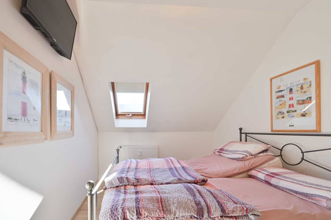 Die Wohnung bietet ein separates Schlafzimmer mit Doppelbett (2,00 x 1,60 m) für 2 Personen. Der Lattenrost lässt sich elektrisch per Fernbedienung auf die gewünschte Höhe einstellen. Damit kann man auch optimal auf dem Zweitfernsehgerät alle Programme sowie auch DVD's gucken. Für Ihre Garderobe gibt es hier außerdem noch einen großen Kleiderschrank. Der neu-verlegte Vinyllaminatboden ist besonders für Allergiker geeignet. Bei geöffnetem Fenster hören Sie nachts auch das Meer rauschen.