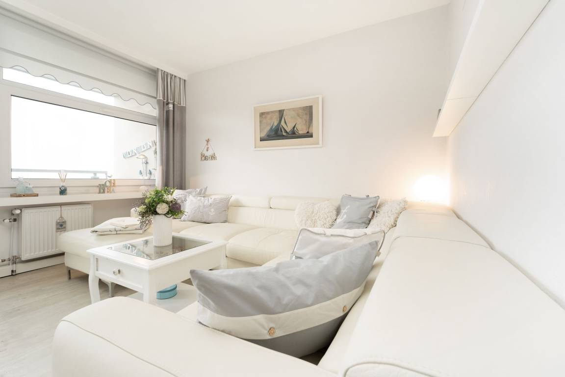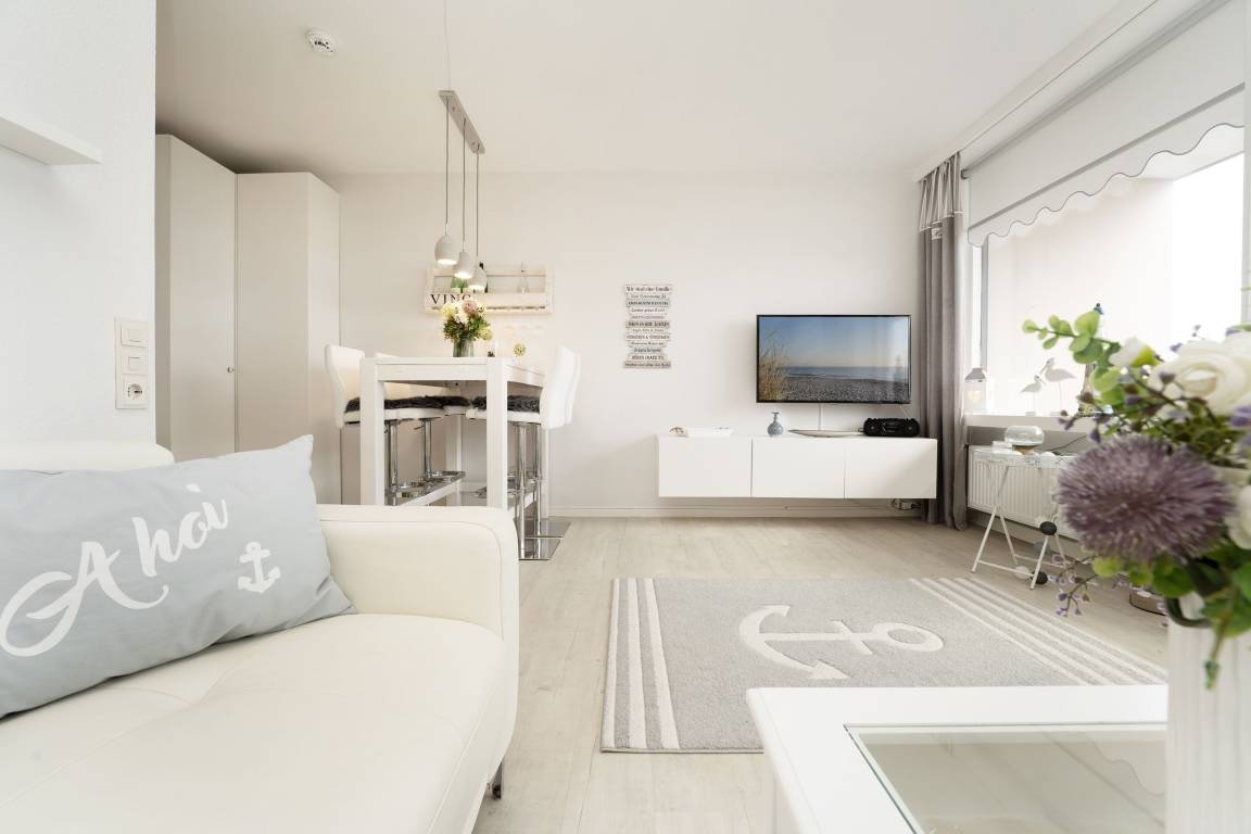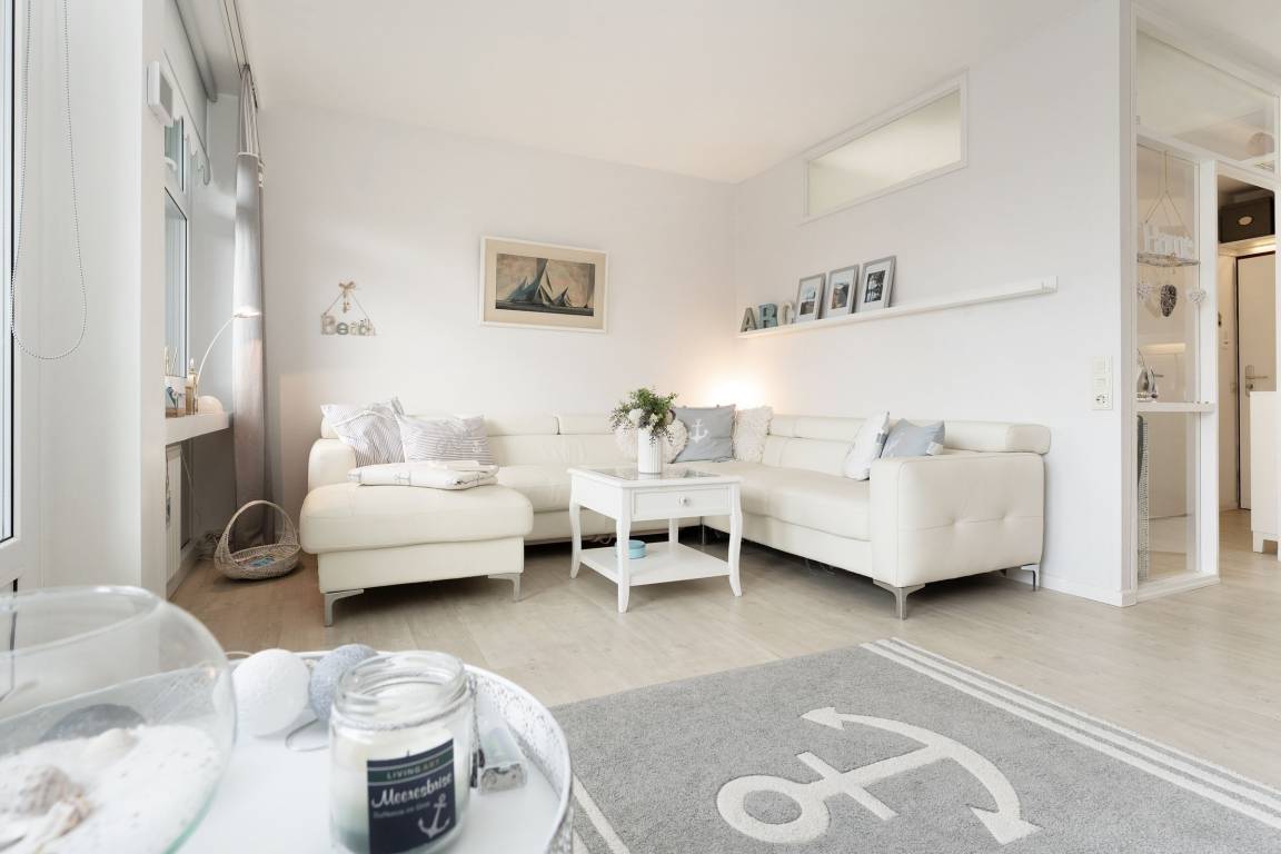 Baltic-View – der Name dieser strandnahen Wohnung in den schönen Strandappartements am Leuchtturmweg ist Programm: Vom überdachten Balkon aus haben Sie einen traumhaften Blick über die Ostsee. Und auch vom liebevoll eingerichteten Wohnbereich aus können Sie das Meer sehen. Nehmen Sie Platz auf der großen Sofalandschaft und genießen Sie Ihre Auszeit. Für die Nacht gibt es einen optisch abgetrennten Schlafbereich mit 2 Einzelbetten (je 90x200 cm). Die helle Küche ist offen gestaltet und funktional ausgestattet. Das Duschbad ist innenliegend. Und nun kann Ihr Urlaub beginnen, der Strand ist nur 100 Meter entfernt...