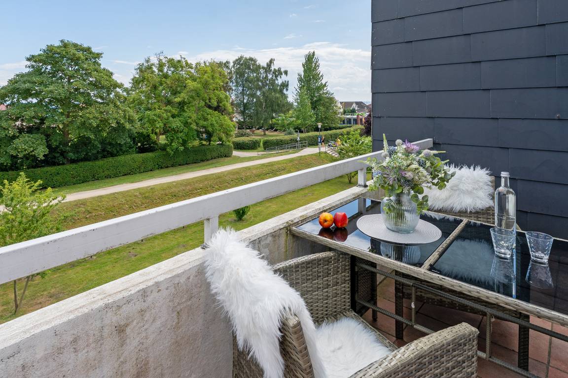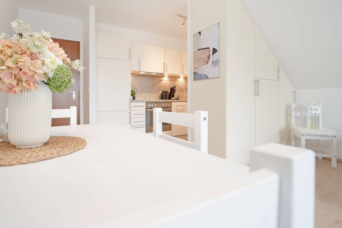 Urlaub in bester Lage von Kellenhusen: strandnahe, ca. 42 m² große 2-Zimmer-Ferienwohnung im 2. Stock (Dachgeschoss) mit 2 Balkonen für bis zu 2 Personen.