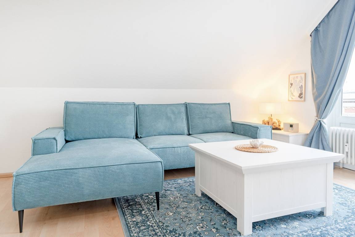 „Das Apartment hat uns sehr gefallen. Sehr schöne freundliche, helle, geschmackvolle Ausstattung. Bequemes Sofa. Von der Baustelle war kaum etwas zu hören. Die Bäckerei ist fußläufig sehr schnell zu erreichen und die Promenade auch. Die Ausstattung ist sehr umfangreich. Ein kleines scharfes Messer wäre vielleicht noch gut. Die Betten sind gut, mir ist allerdings der Topper etwas zu weich. Das Apartment ist sehr empfehlenswert.“