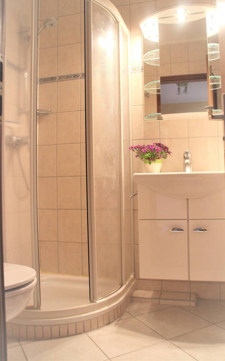 Im schönen Dusch-Bad mit WC liegt für Sie ein Fön bereit.