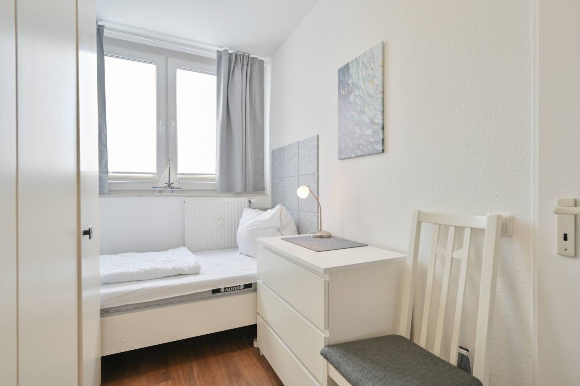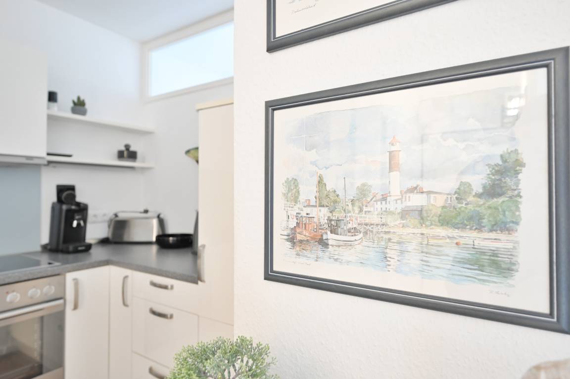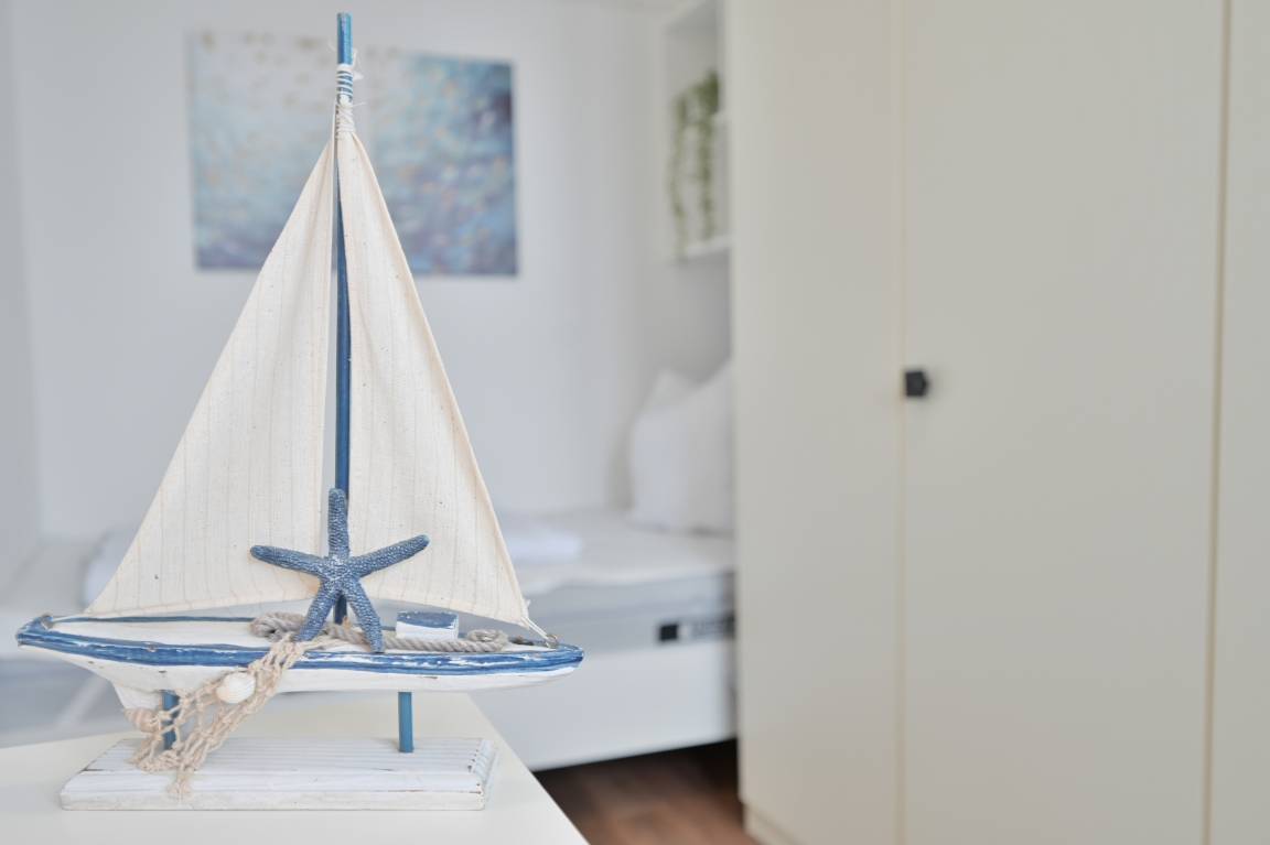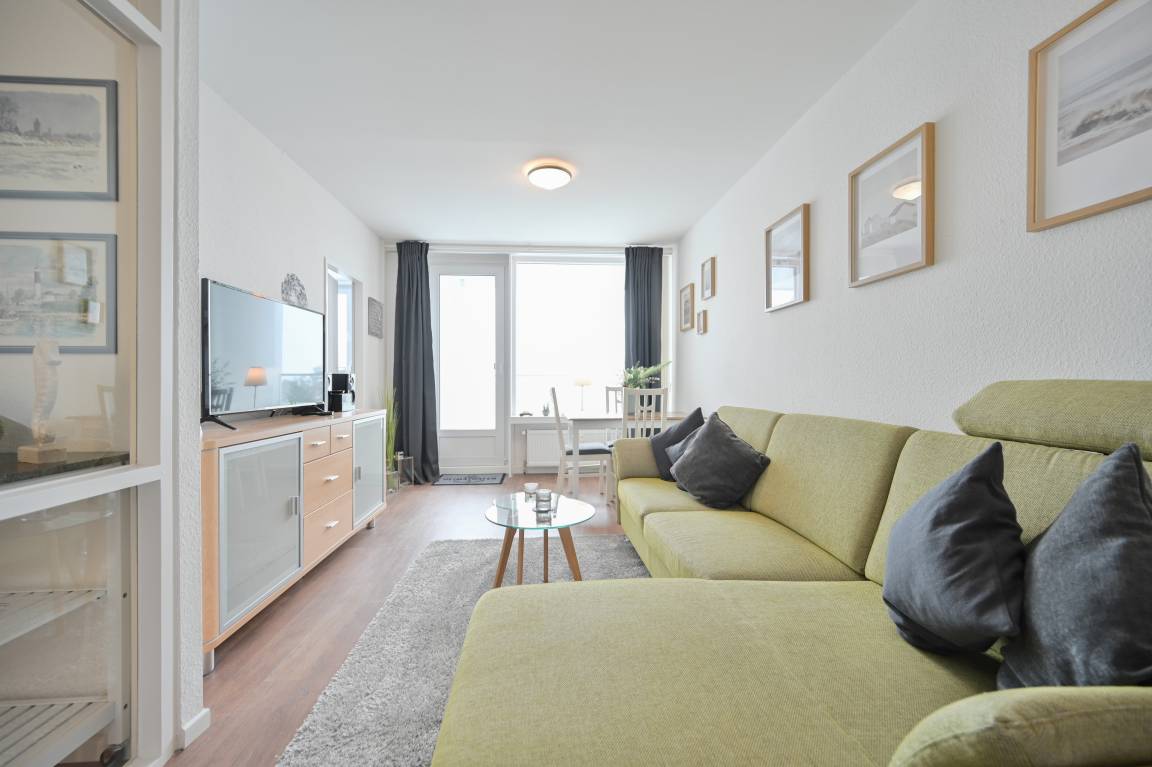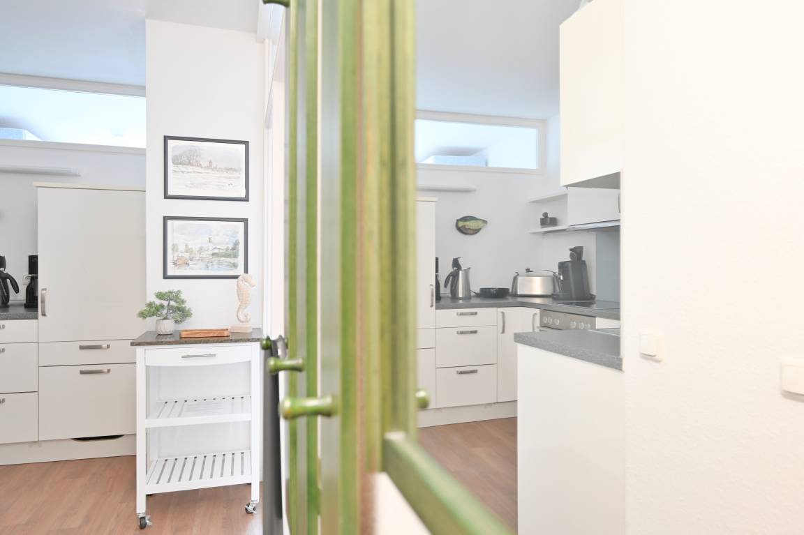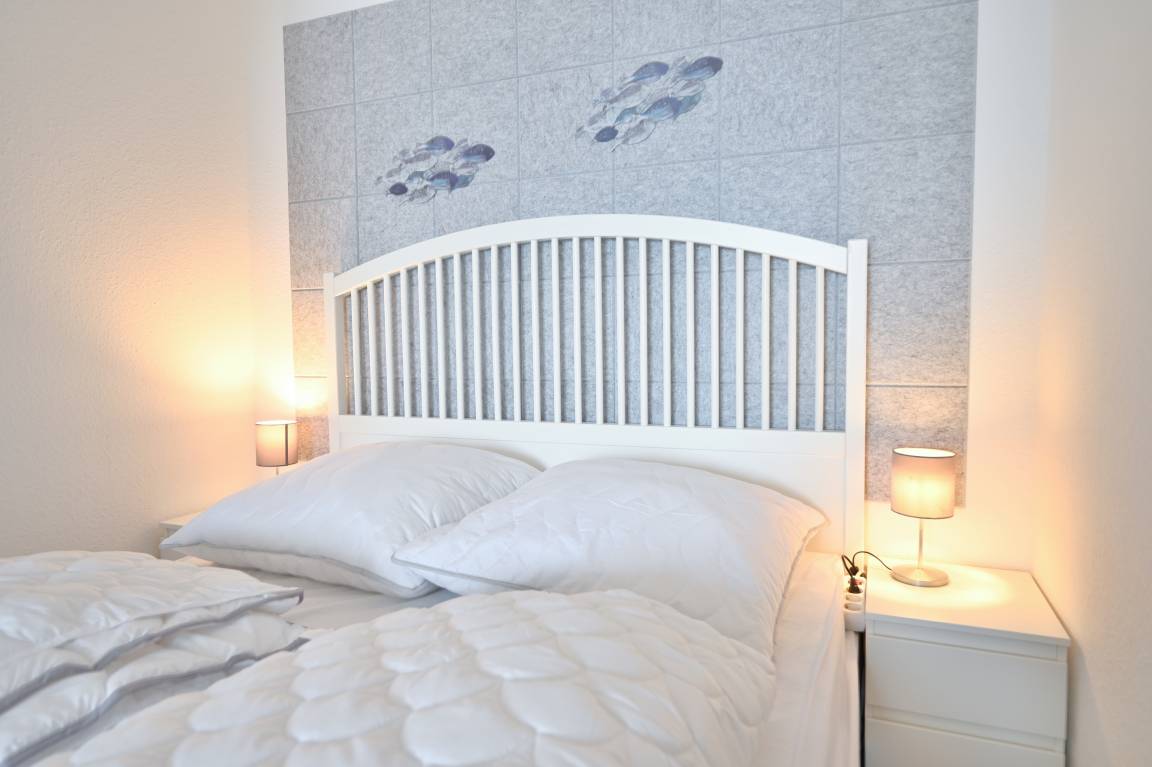 Die Wohnung ist liebevoll und modern eingerichtet und bietet jeden nötigen Komfort, den man sich für seinen Urlaub wünscht. Auf 43 qm erstrecken sich ein kleiner Flur, ein helles Duschbad, eine gut ausgestattete Küche, sowie ein Wohnraum mit Schlafnische und ein separates Schlafzimmer. Letzteres verfügt über zwei gemütliche Betten (90 x 200 cm) und einen großen Kleiderschrank. Im Wohnraum lädt ein großes Sofa zum Chillen oder Fernsehen ein. Am Fenster befindet sich ein Esstisch mit 4 Stühlen (einer davon dient meist als Ablage im Schlafzimmer). Die Schlafnische ist sehr gemütlich und kann durch einen Vorhang vom restlichen Zimmer getrennt werden (Bett 160 cm breit)