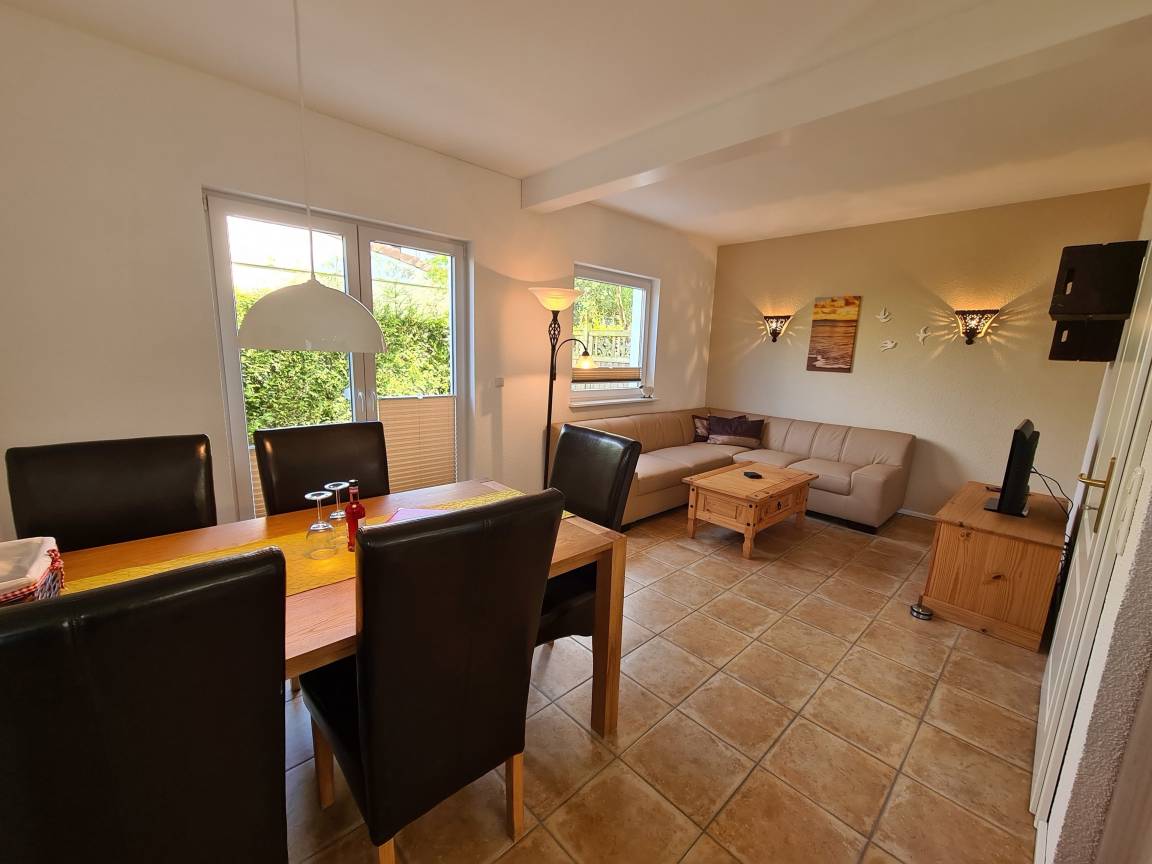 Das Haus befindet sich im ruhig gelegenen Bereich des Grundstücks und nur ca. 450 Meter vom Strand entfernt. Aufgeteilt ist Ihr Ferienobjekt im Erdgeschoss in Eingangsbereich mit Flur und Abstellraum, WC , Waschmaschine kostenpflichtig, Wohnzimmer mit Essbereich und offener Küche. Im Obergeschoss befinden sich ein Schlafzimmer mit Doppelbett, ein Kinderzimmer mit zwei Einzelbetten und ein schönes Duschbad mit begehbarer Dusche.
