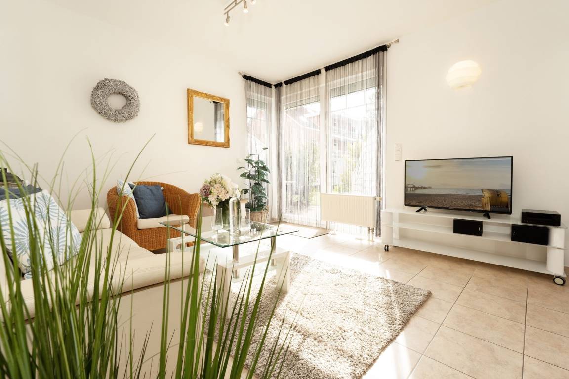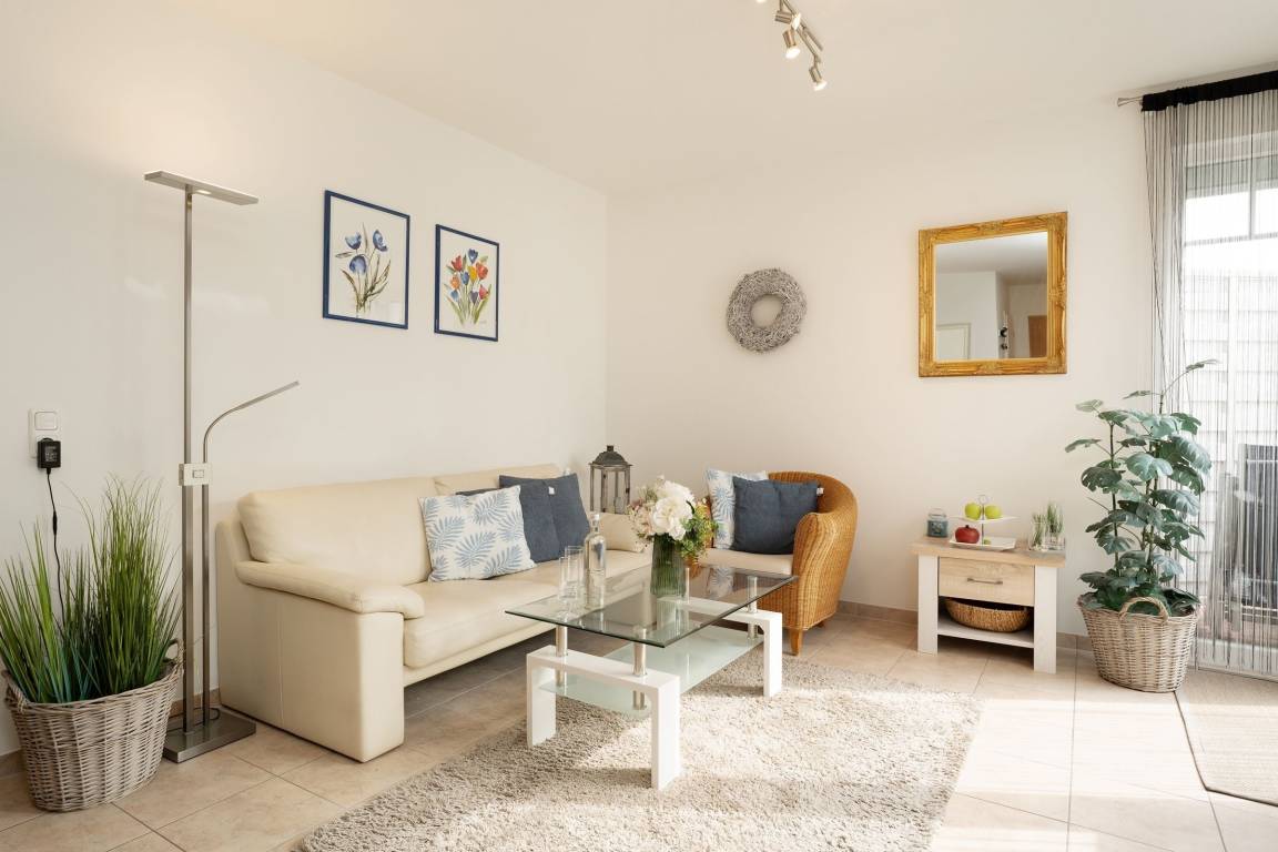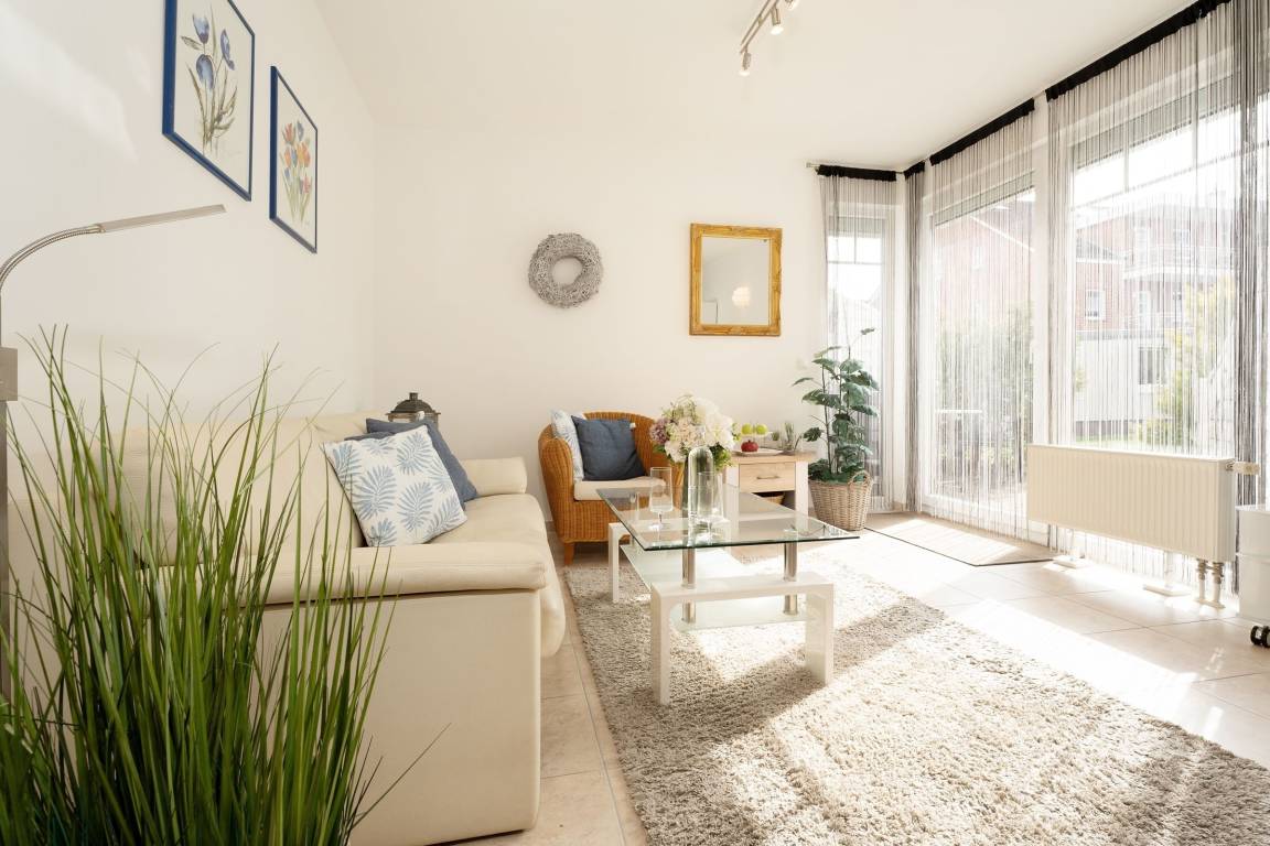 Genießen Sie Ihren Urlaub von seiner schönsten Seite. Direkt hinter dem Deich empfängt Sie eine komfortable Wohnung im Erdgeschoss des Hauses mit eigener Terrasse. Das Objekt verfügt über ein Wohnzimmer mit Flachbild-TV sowie eine zum Wohnbereich offene, moderne Küche mit praktischem Esstresen. Das geräumige Schlafzimmer hat ein Doppelbett (2x 90x200 cm) und verfügt über Rollläden zum Verdunkeln. Das helle Badezimmer ist mit einer Fußbodenheizung ausgestattet. Verbringen Sie sonnige Stunden auf der Terrasse – Terrassenmöbel und eine Sonnenliege sorgen für Komfort.