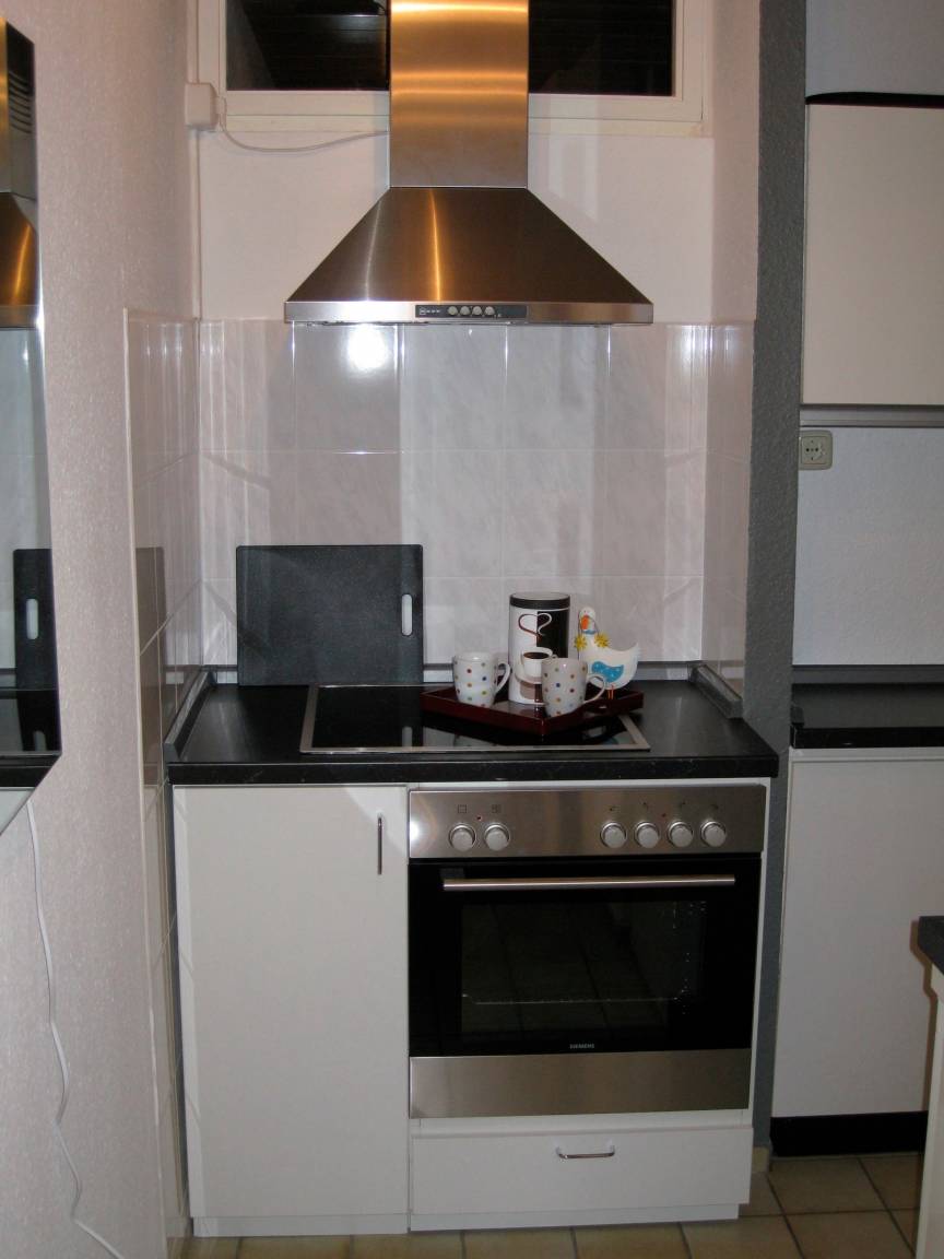 Neu gestaltet ist der Eingangsbereich mit Garderobe und Spiegel und in der Küchenzeile ein 4-Plattenherd mit Backofen und Ceranfeld. Auch die Spüle ist neu und an die vorhandene Küche angepasst, so dass hier auch im Urlaub das Kochen Spaß machen kann.